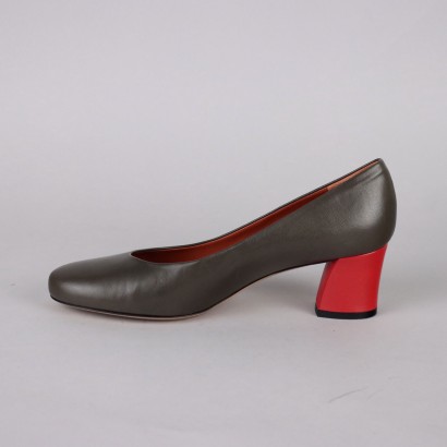Originali décolleté in morbida nappa grigia, con tacco quadrato in nappa rossa. Altezza tacco: 5,5 cm. Date le condizioni, le scarpe non sono probabilmente mai state usate.