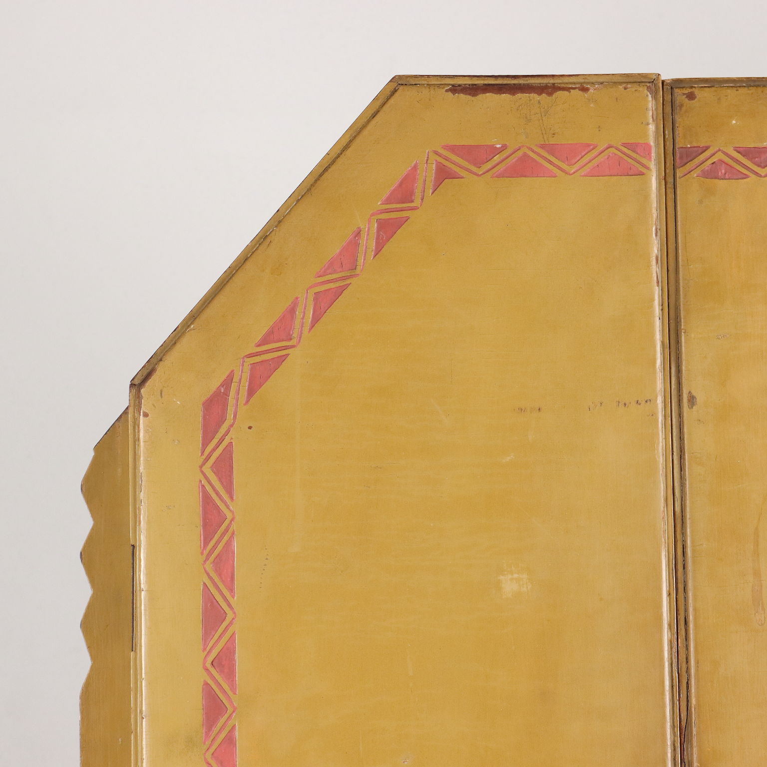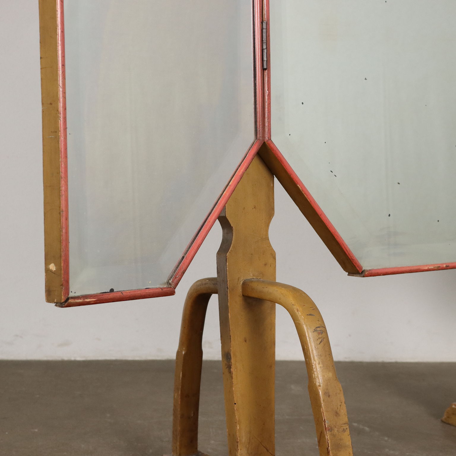 Specchio con doppia anta con chiusura a battente, in legno laccato e decori.