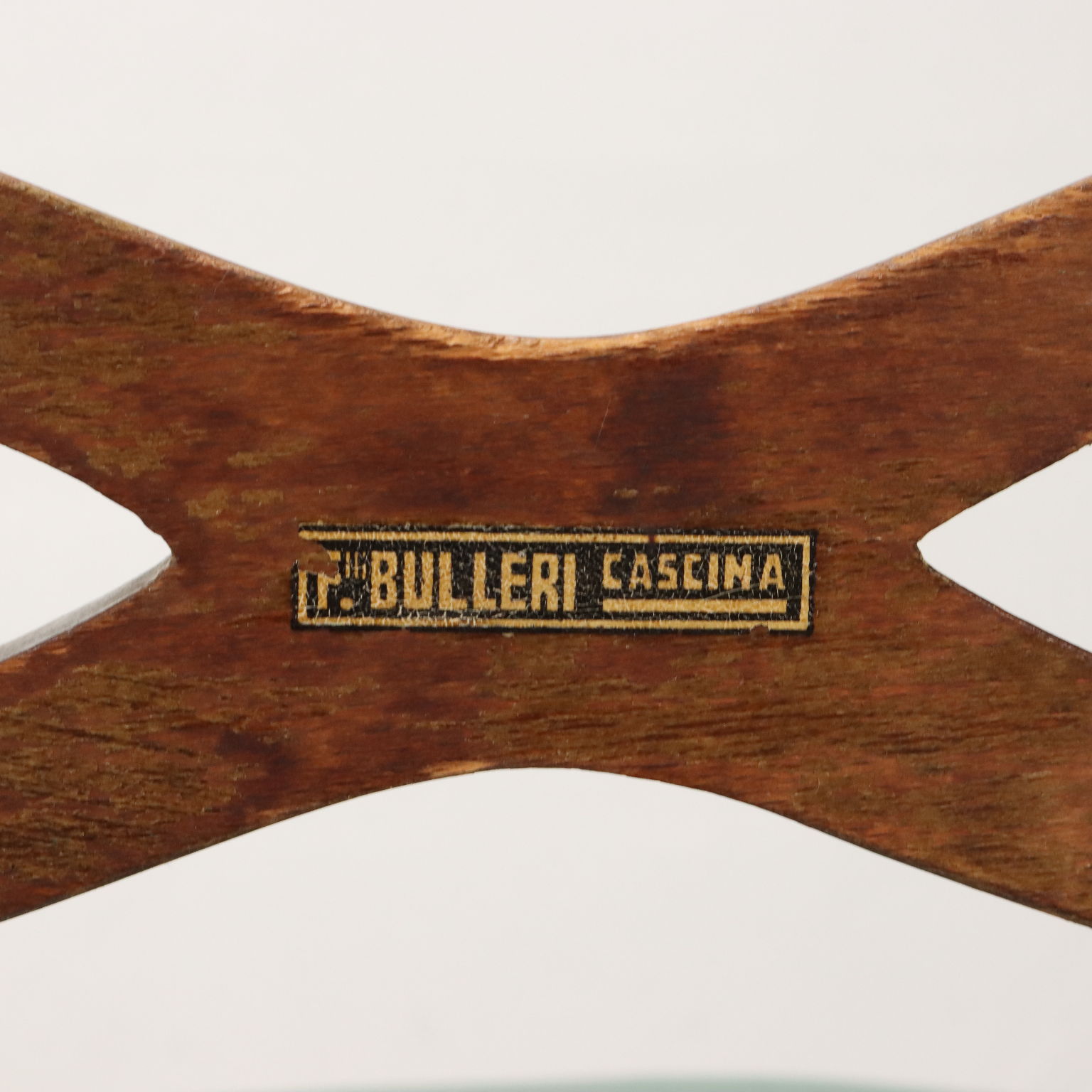 Gruppo di 8 sedie, di cui 2 da capo tavola con braccioli. Legno di faggio tinto, imbottitura a molle, rivestimento in similpelle. Il prodotto può essere restaurato dal nostro laboratorio con intervento che prevede rifacimento della lucidatura, imbottitura e del rivestimento scegliendo tra le nostre diverse campionature.