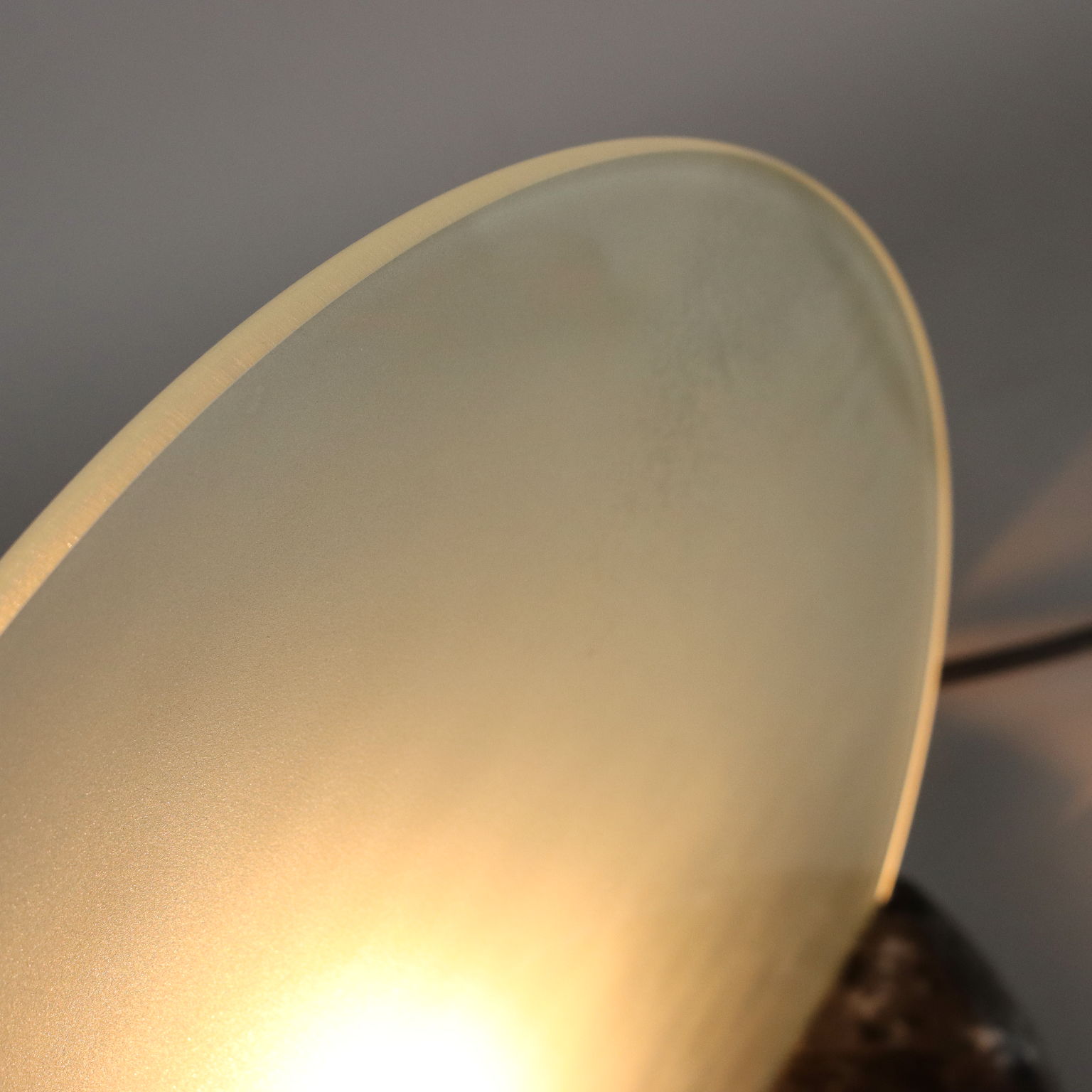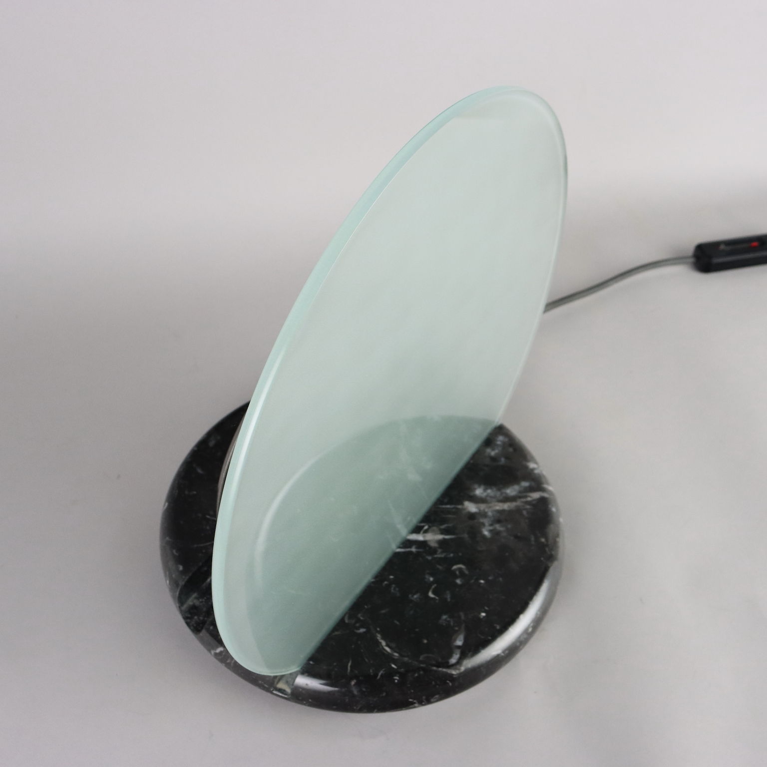 Lampada da tavolo con base in marmo, alluminio e vetro.