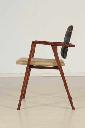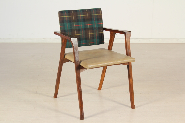 Sedia; struttura in legno di palissandro, imbottitura in espanso, rivestimento in tessuto. Buone condizioni, presenta piccoli segni di usura.