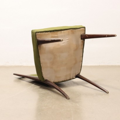 Gruppo di 5 sedie in legno di faggio tinto, imbottitura a molle, rivestimento in tessuto.