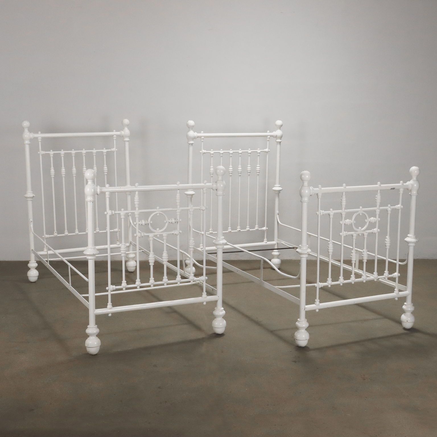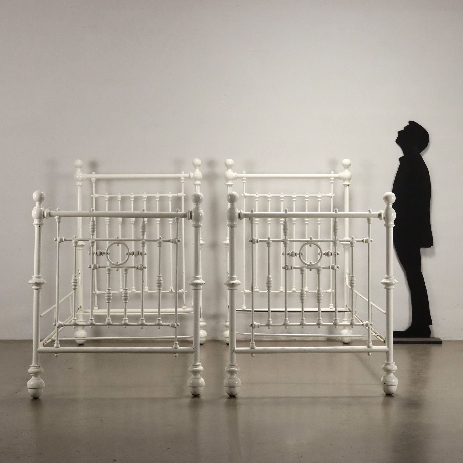 Coppia di Letti Singoli in Ferro Battuto Laccato - Italia Fine XIX - Inizio XX secolo