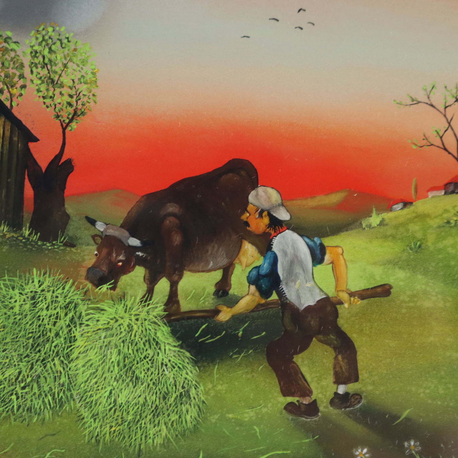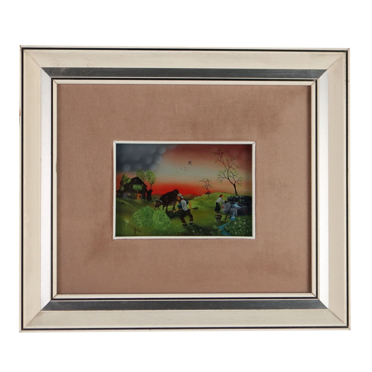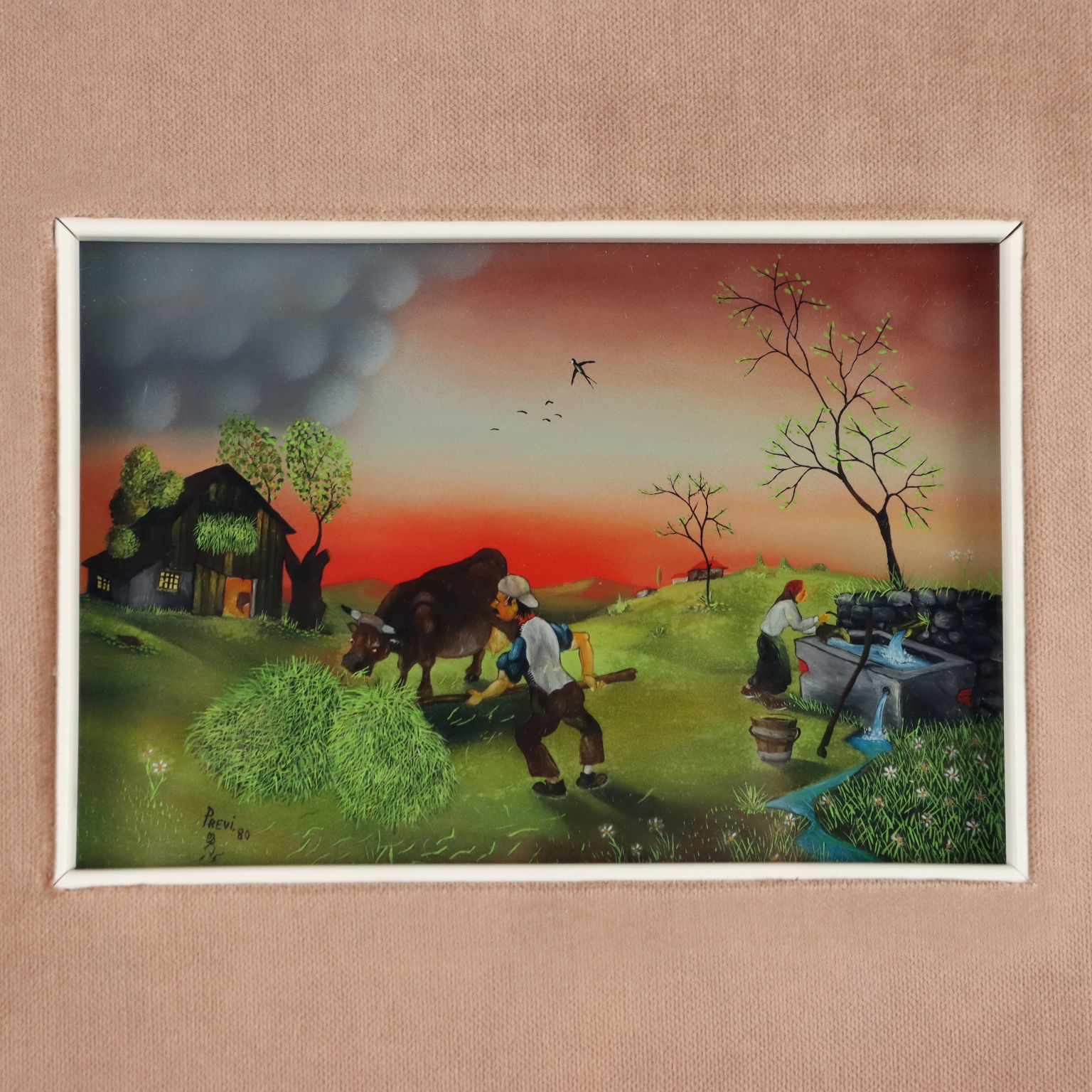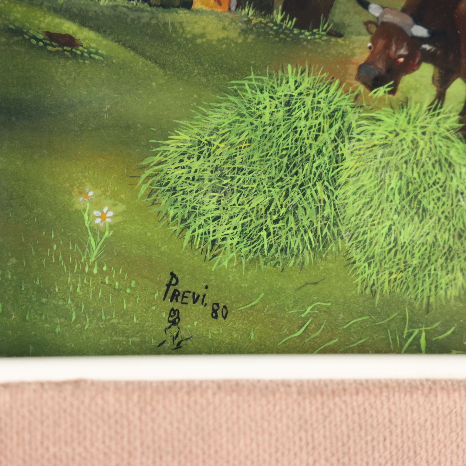 Dipinto Naif di Mari Previ - Scena di Vita contadina 1980