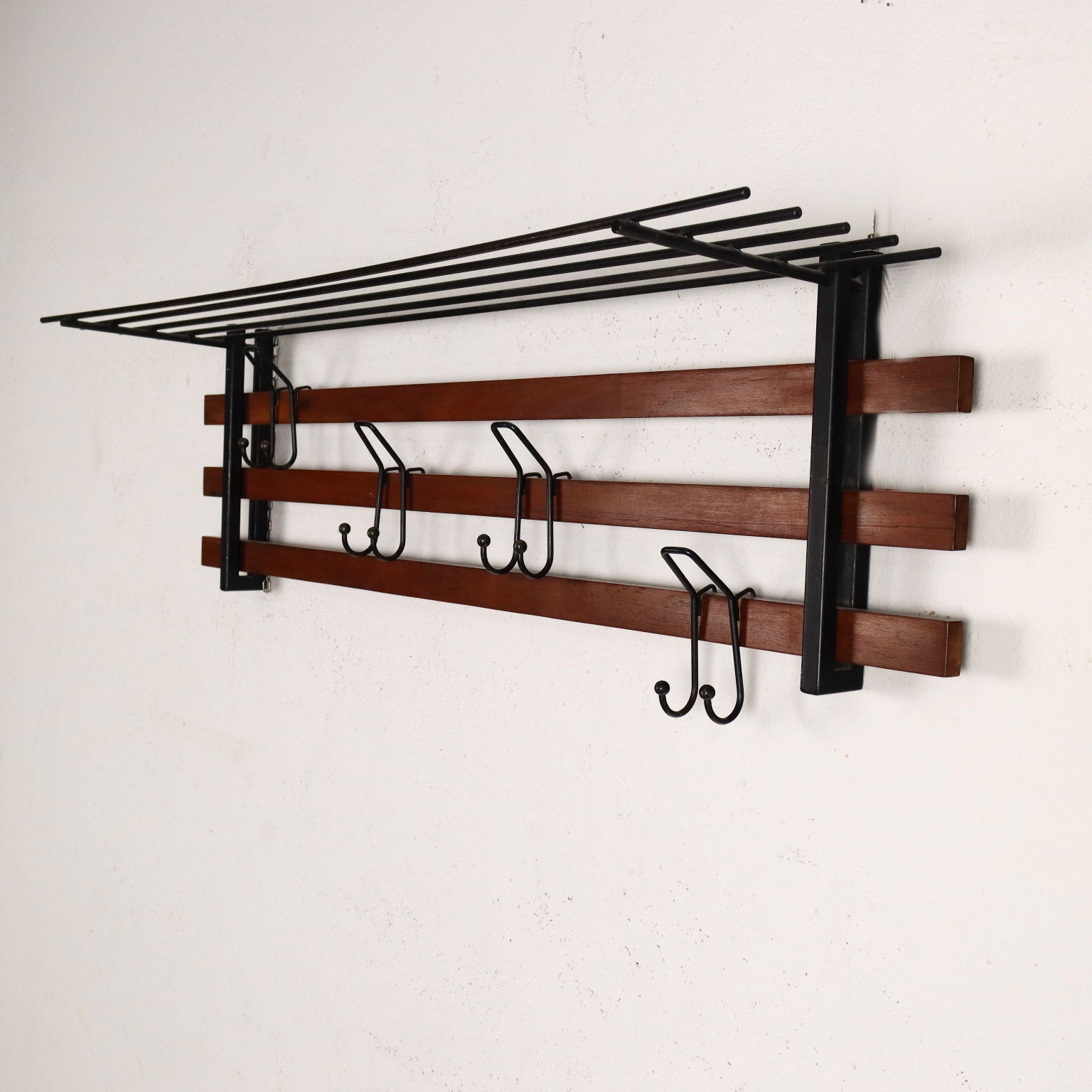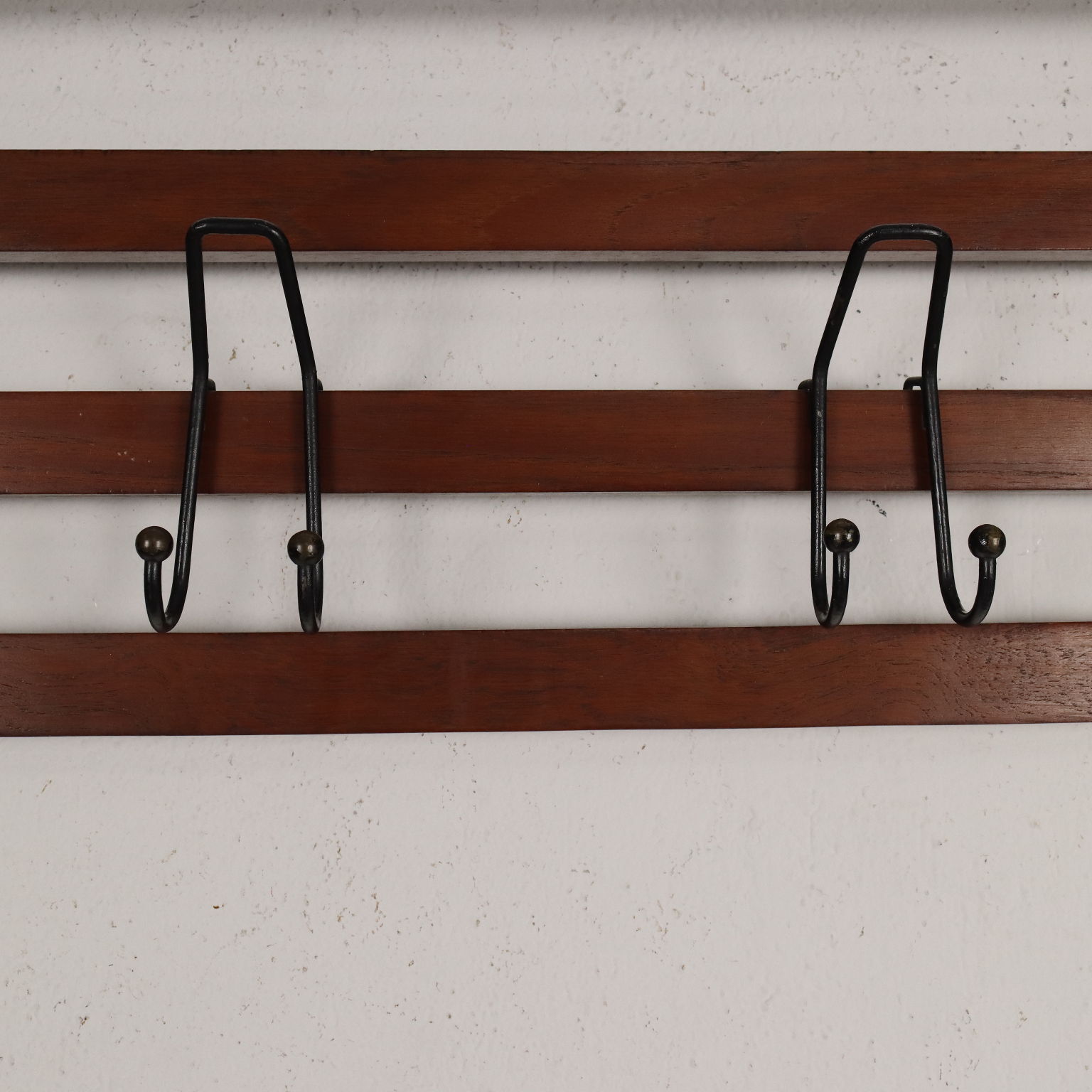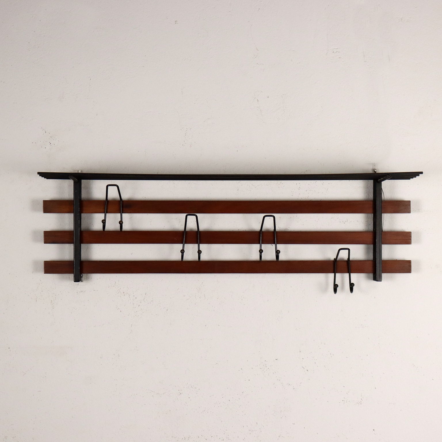Appendiabiti a parete in metallo smaltato,liste in legno di teak.