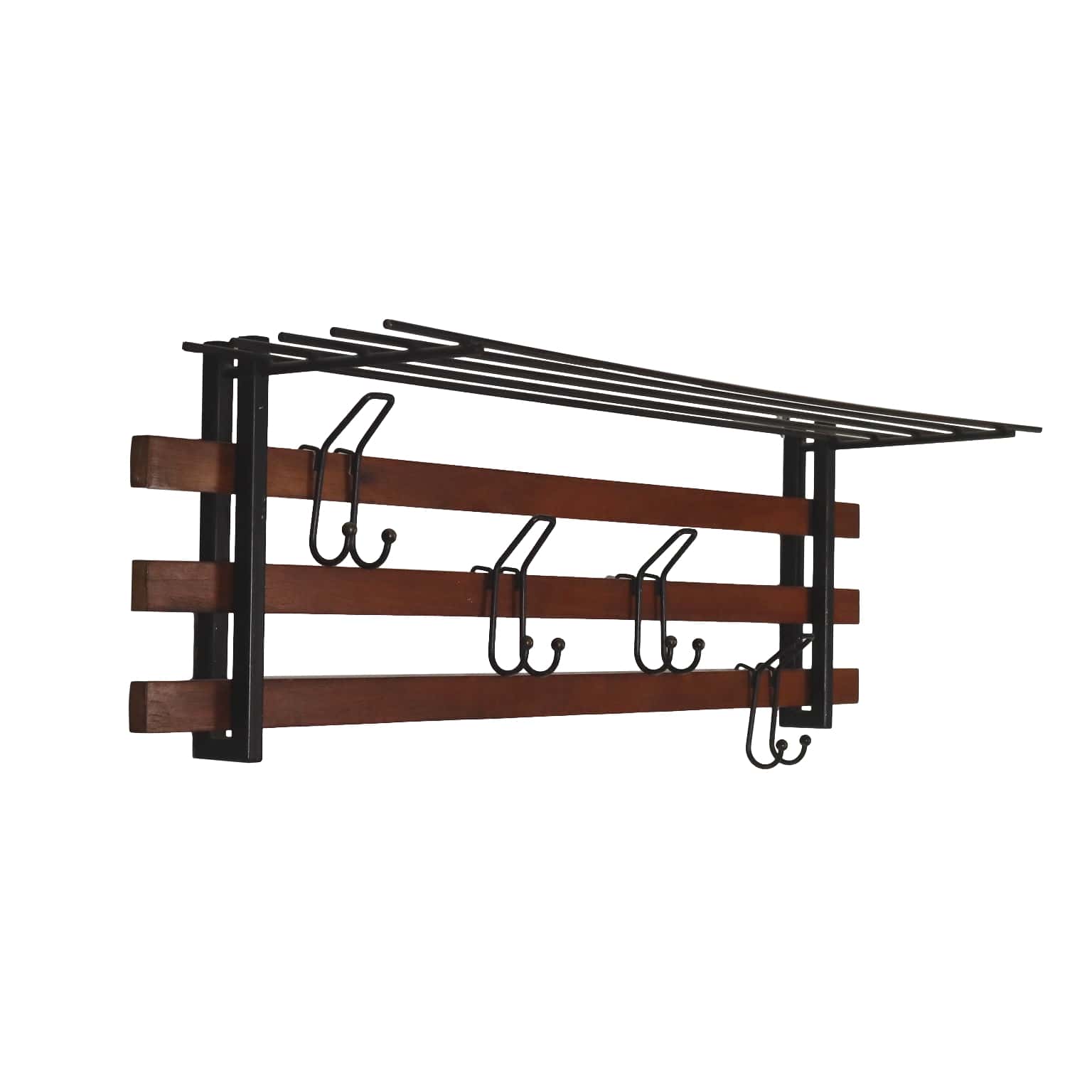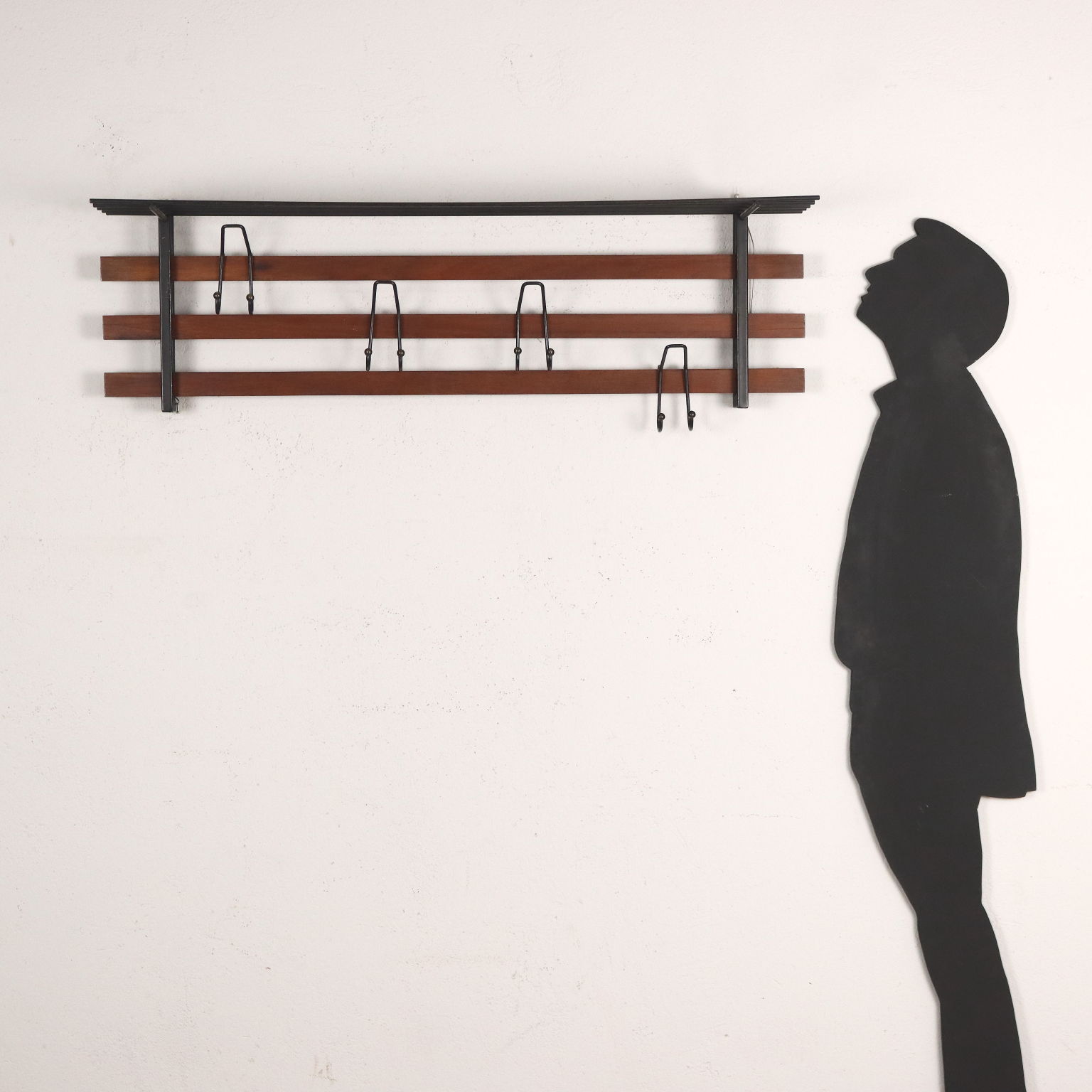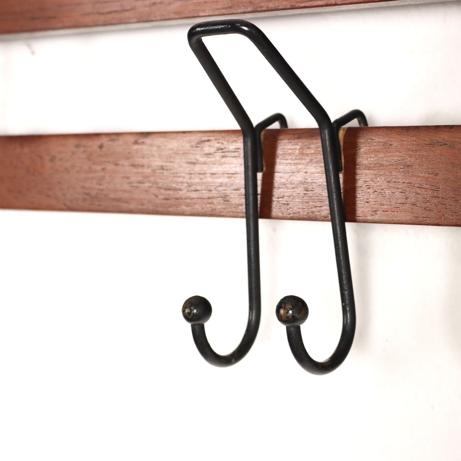 Appendiabiti a parete in metallo smaltato,liste in legno di teak.
