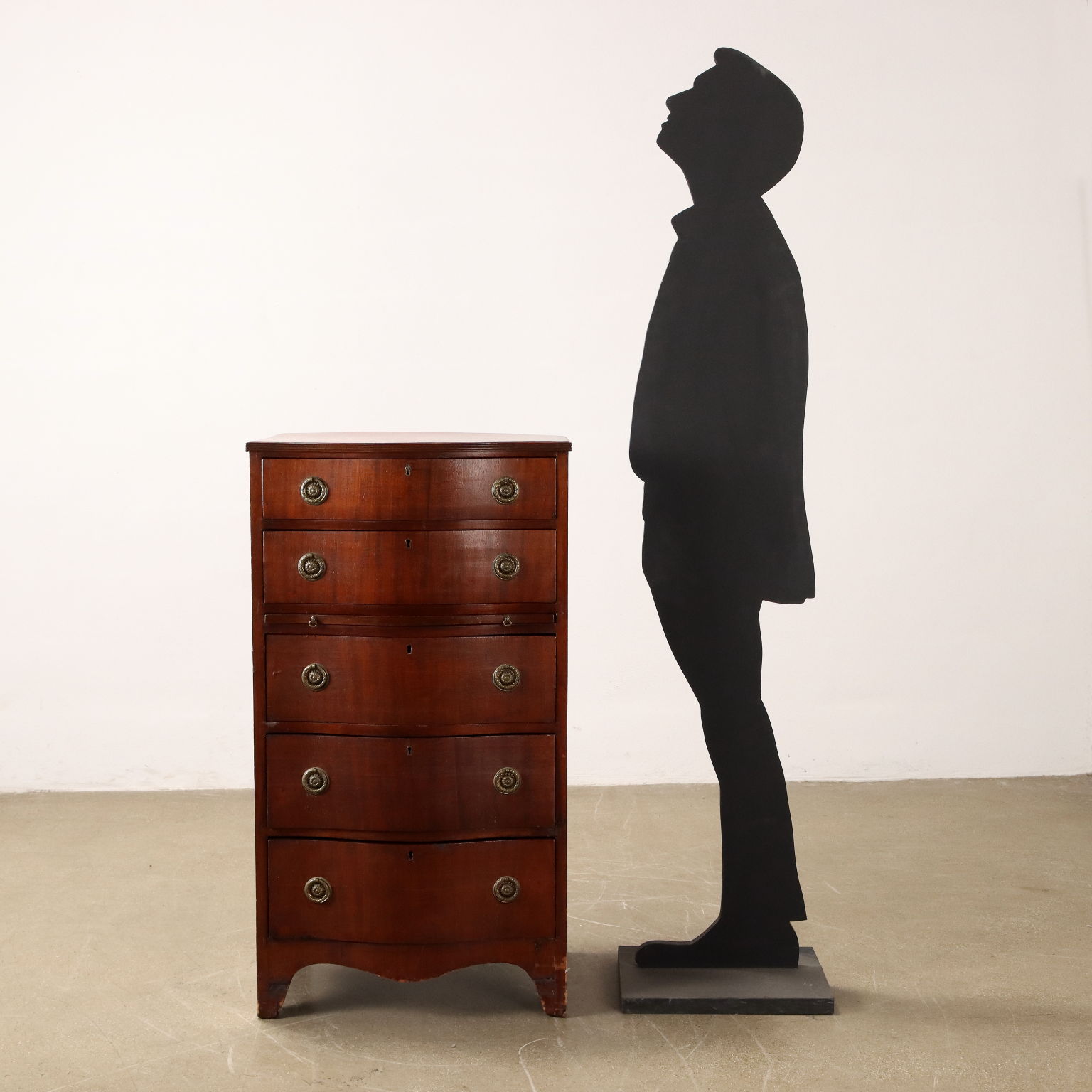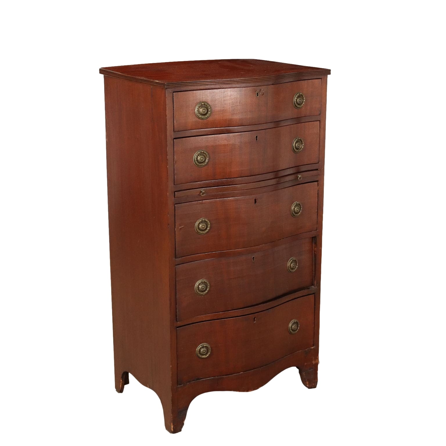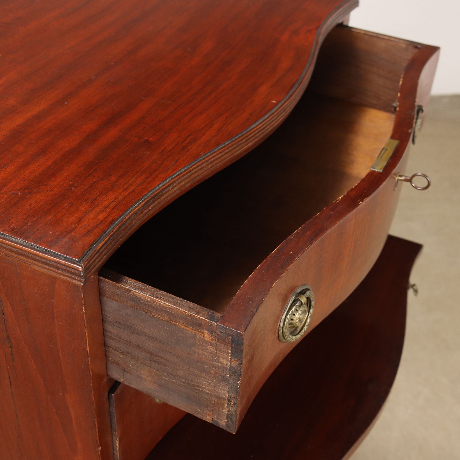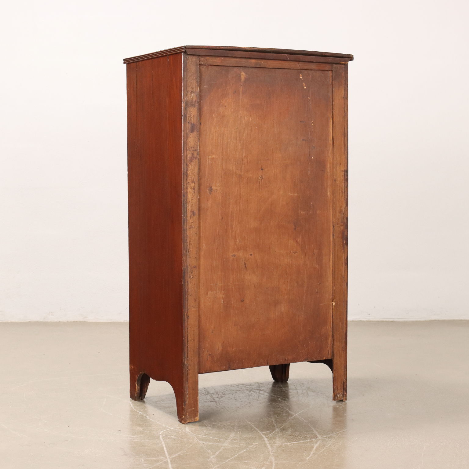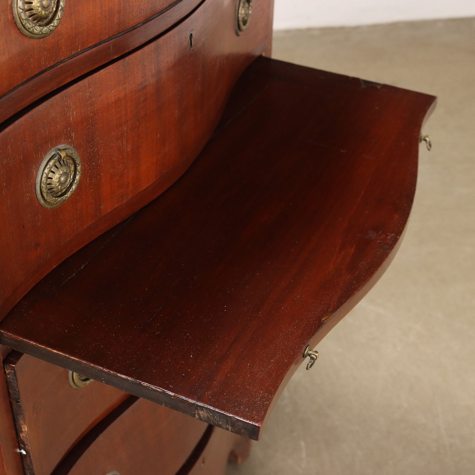 Piccola cassettiera-scrittoio in stile impiallacciata mogano, Francia inizio XX secolo. Fronte mosso a cinque cassetti con tiretto estraibile che funge da piano scrittoio.