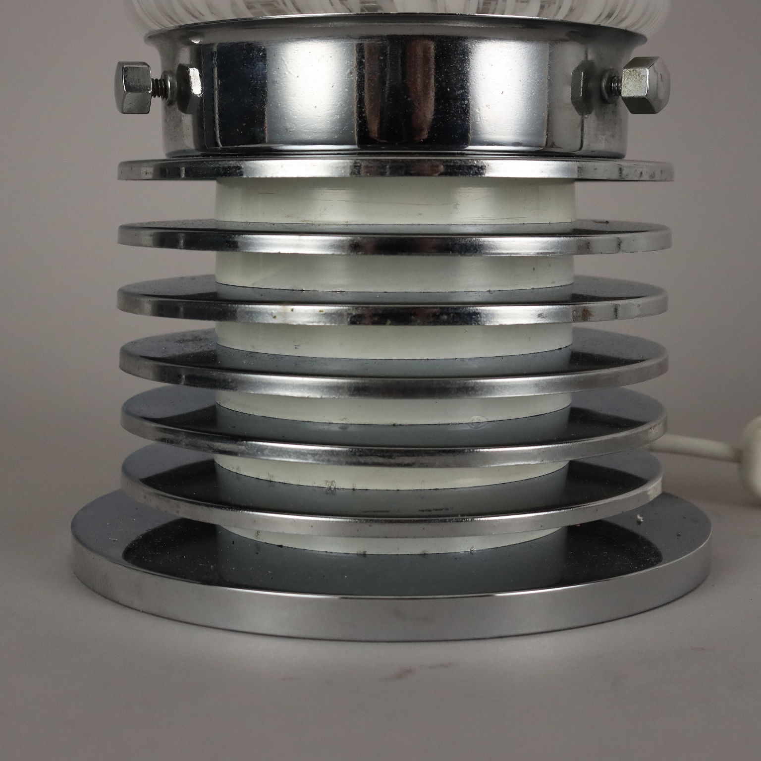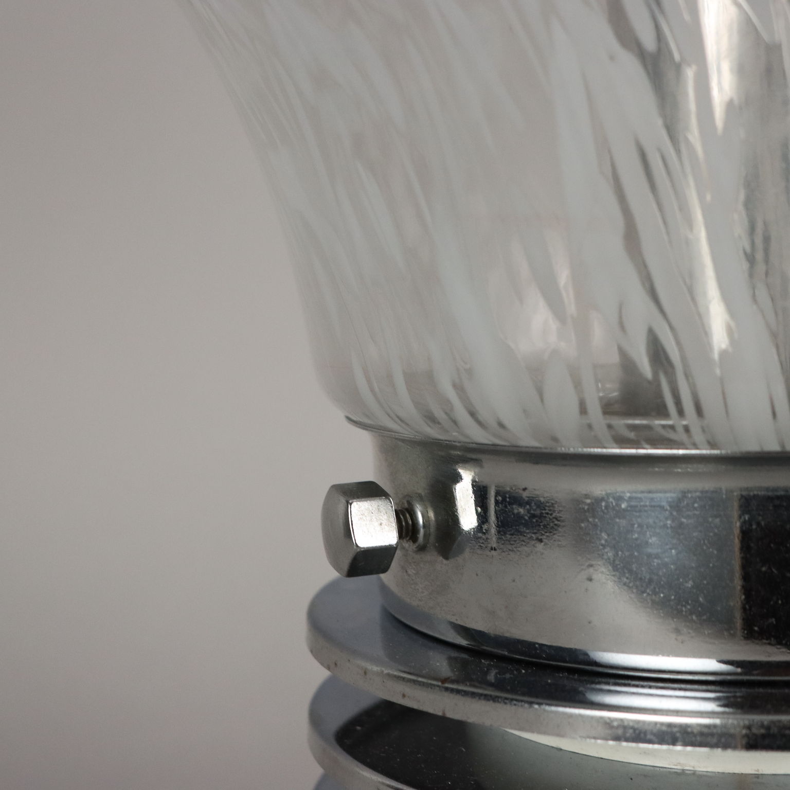 Lampada da tavolo vintage di manifattura italiana anni '60 '70 in metallo cromato e vetro lavorato.