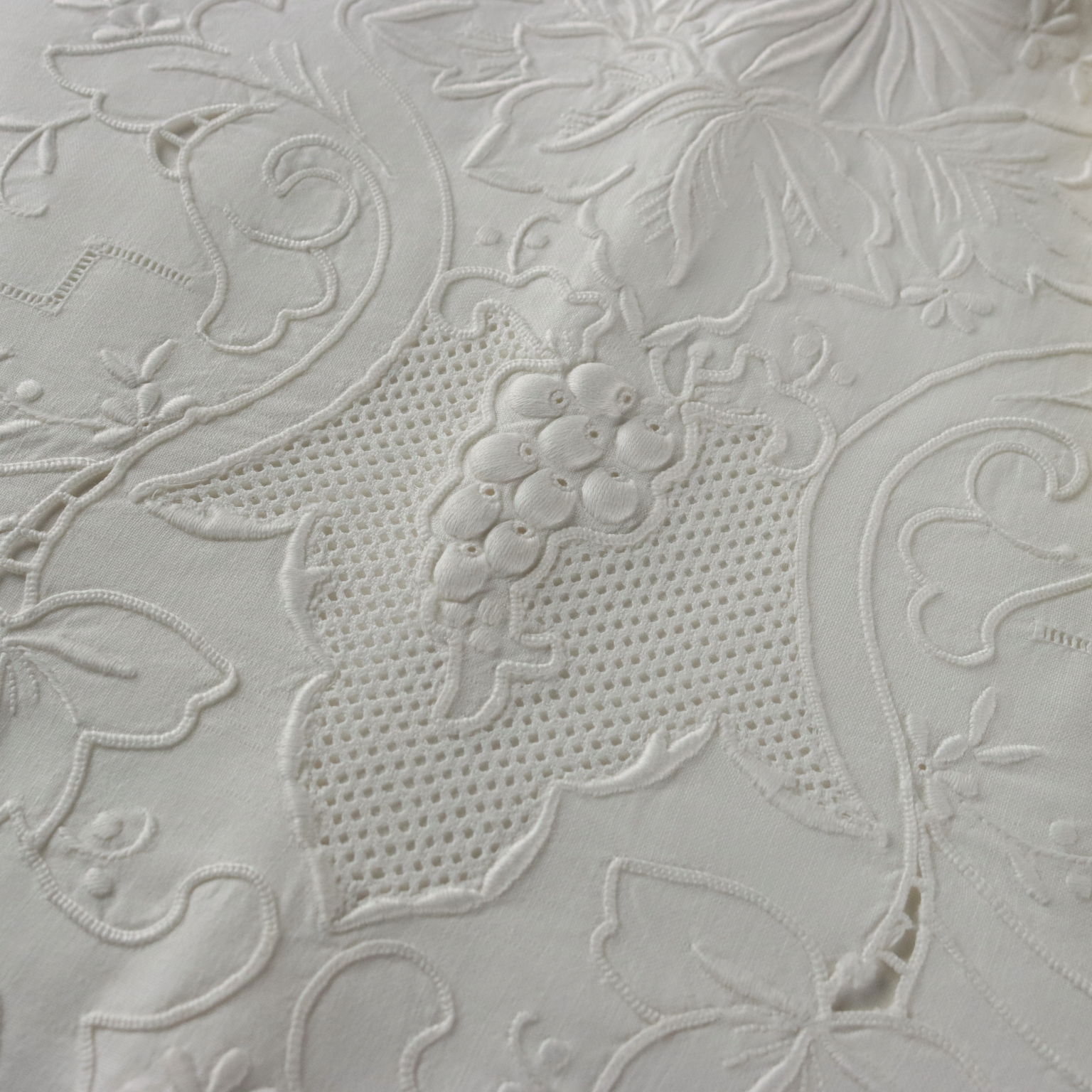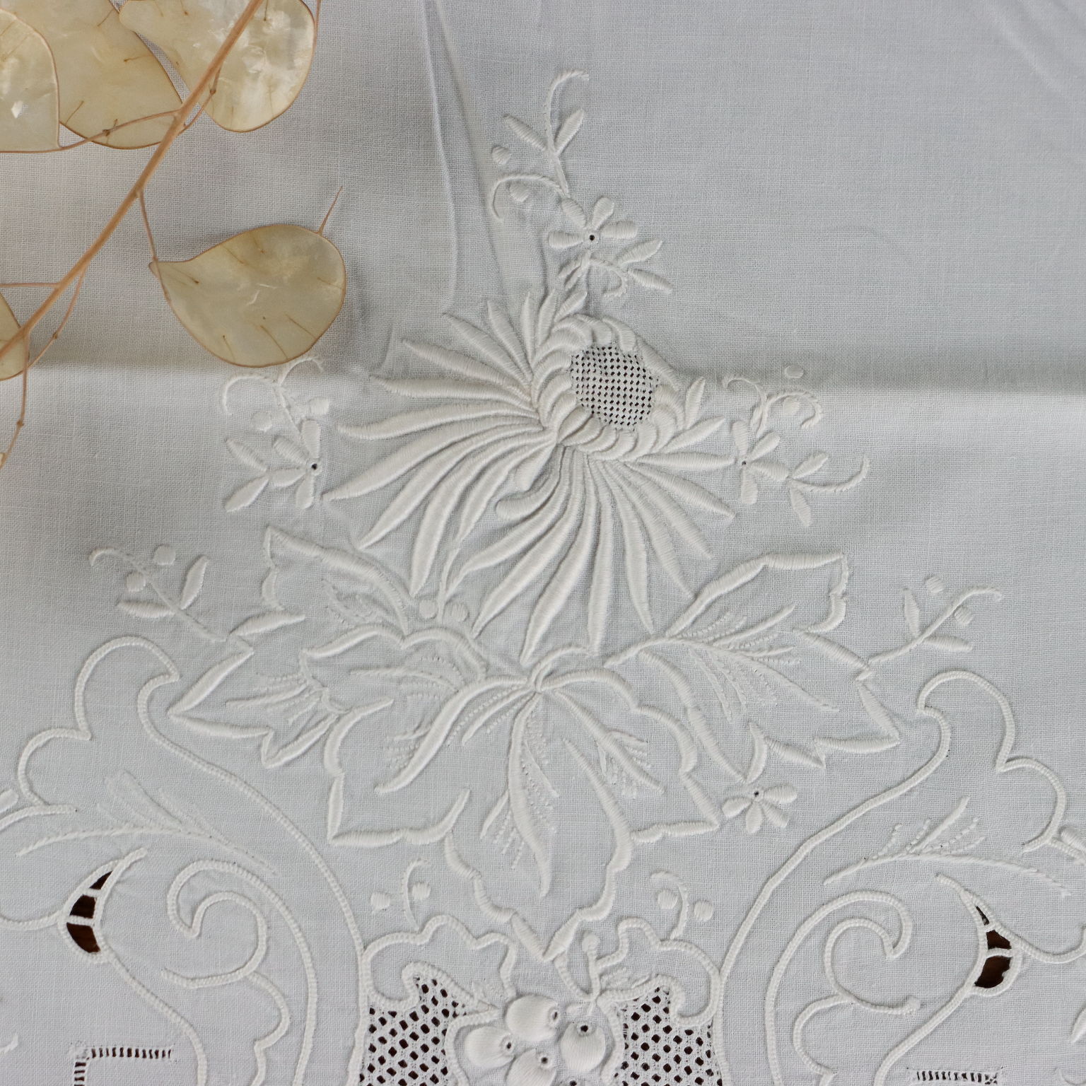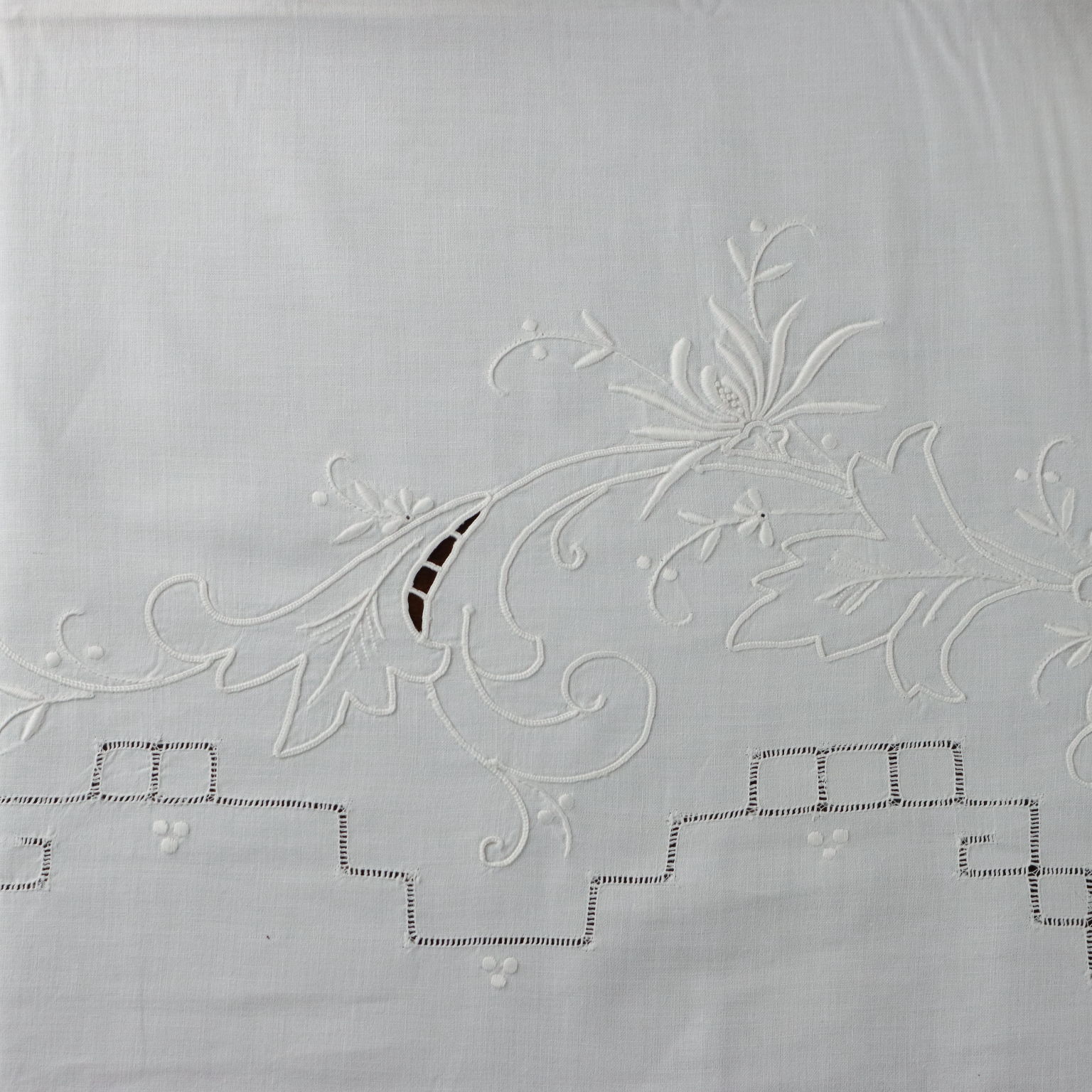 Lenzuolo Matrimoniale Dal corredo della nonna elegante lenzuolo ricamato in punto pieno punto burano e lavorazione intaglio il tutto a tema floreale Colore bianco Composizione cotone Dimensioni cm 220 x cm 248