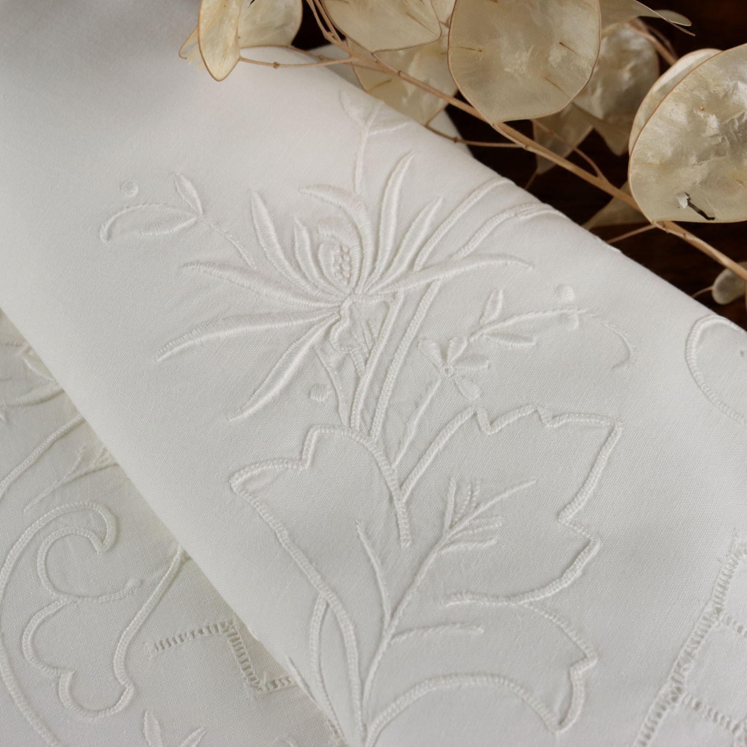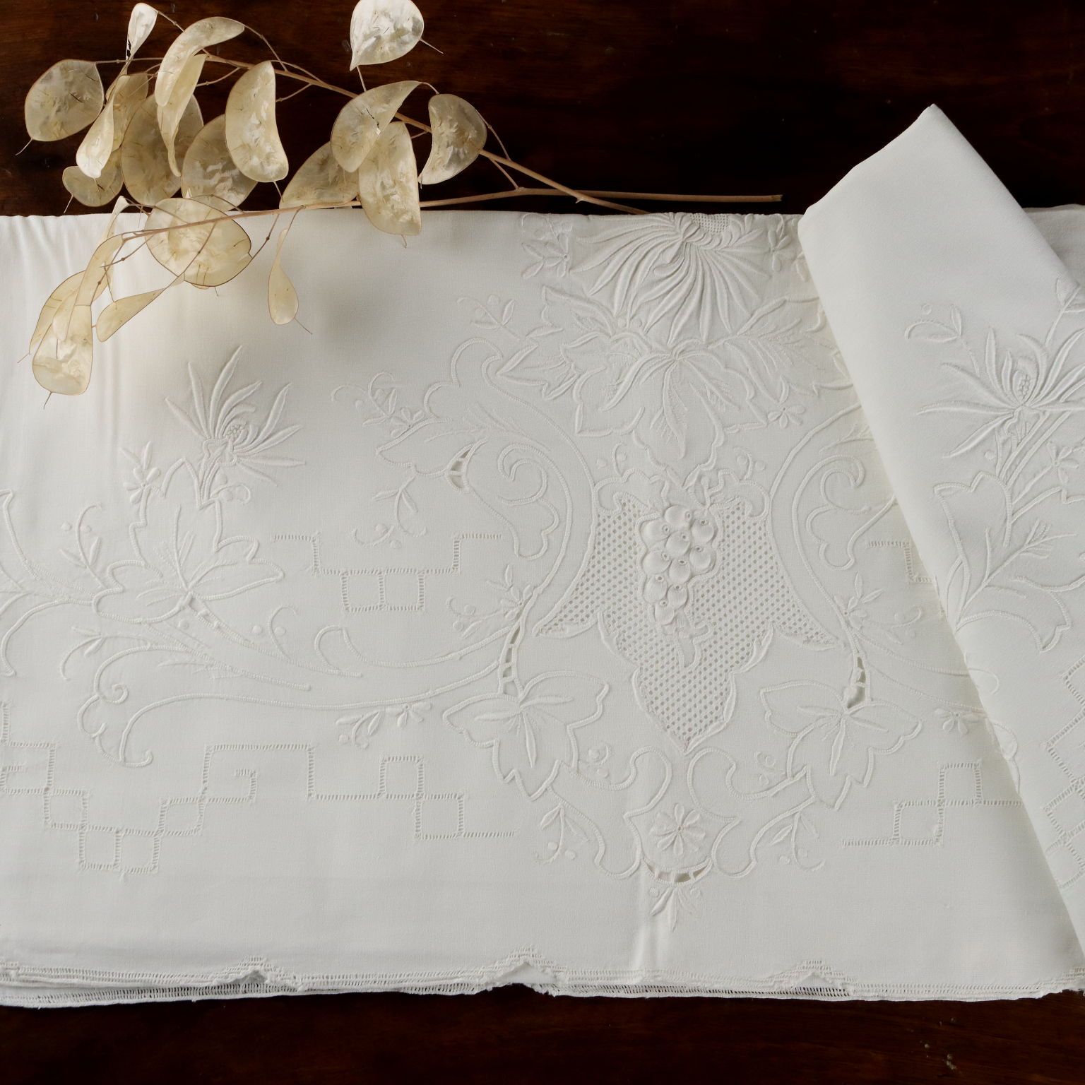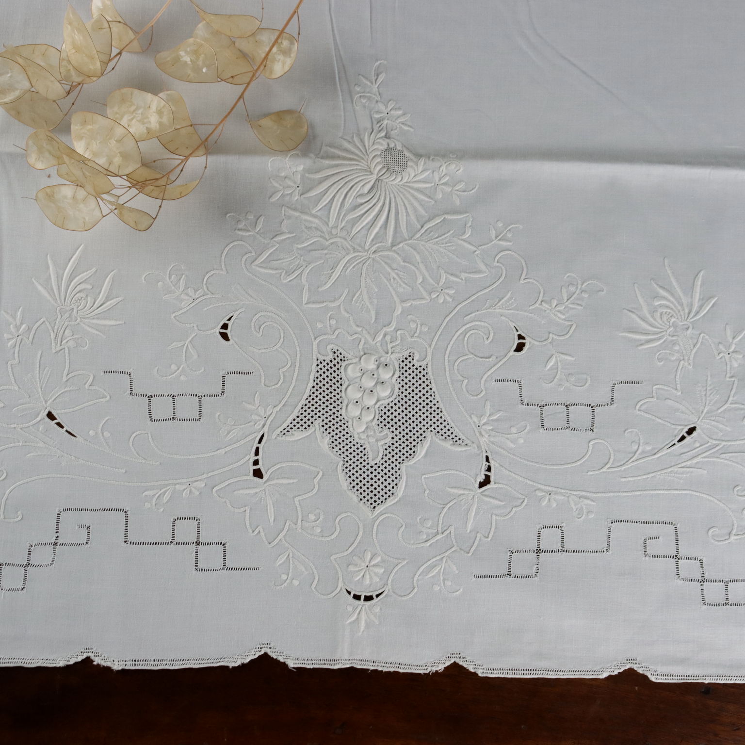 Lenzuolo Matrimoniale Dal corredo della nonna elegante lenzuolo ricamato in punto pieno punto burano e lavorazione intaglio il tutto a tema floreale Colore bianco Composizione cotone Dimensioni cm 220 x cm 248