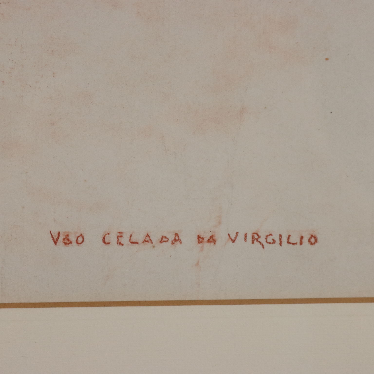 Sanguigna su carta. firmato in basso a destra. Il Celada, che amò dipingere la donna sia nella ritrattistica che nei suoi studi di figure, propone un corpo femminile, sodo e classicheggiante sia nelle forme sia nei riferimenti alla pittura del passato, La pittura di Celada è capace di bloccare nel tempo e nello spazio la realtà, in una maniera che appare distaccata, analitica e scientificamente esatta (colori, riflessi, trasparenze), ma comunicando - al contrario di una totale irrealtà - un grande pathos narrativo. L'opera è presentata in cornice.