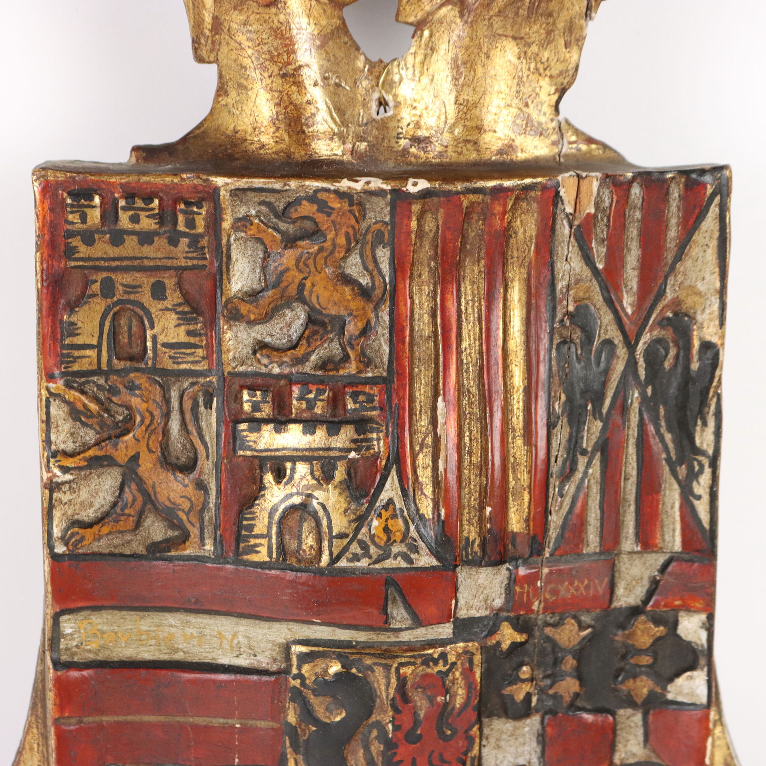 Stemma in Legno Intagliato Dorato e Dipinto - Italia XX Secolo