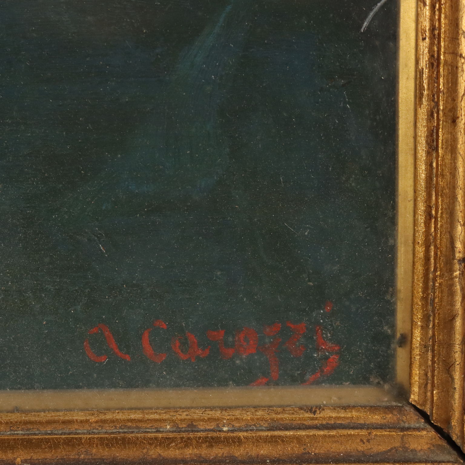 Olio su tavola. Firmato in basso a destra. Moglie nonchè allieva di Giuseppe Carozzi, l'artista si distinse come paesaggista e per le sue composizioni floreali. L'opera è presentata in cornice della prima metà del '900.