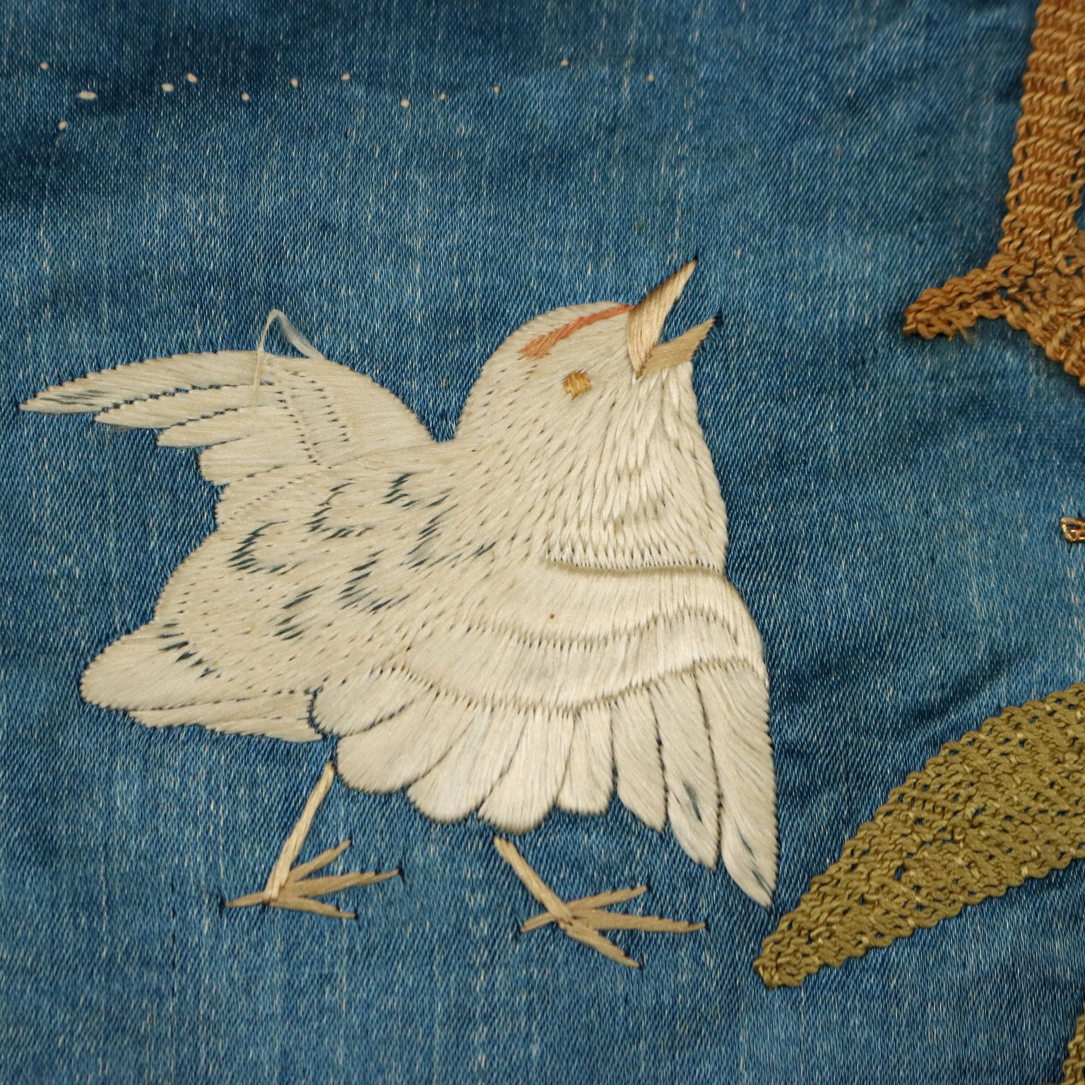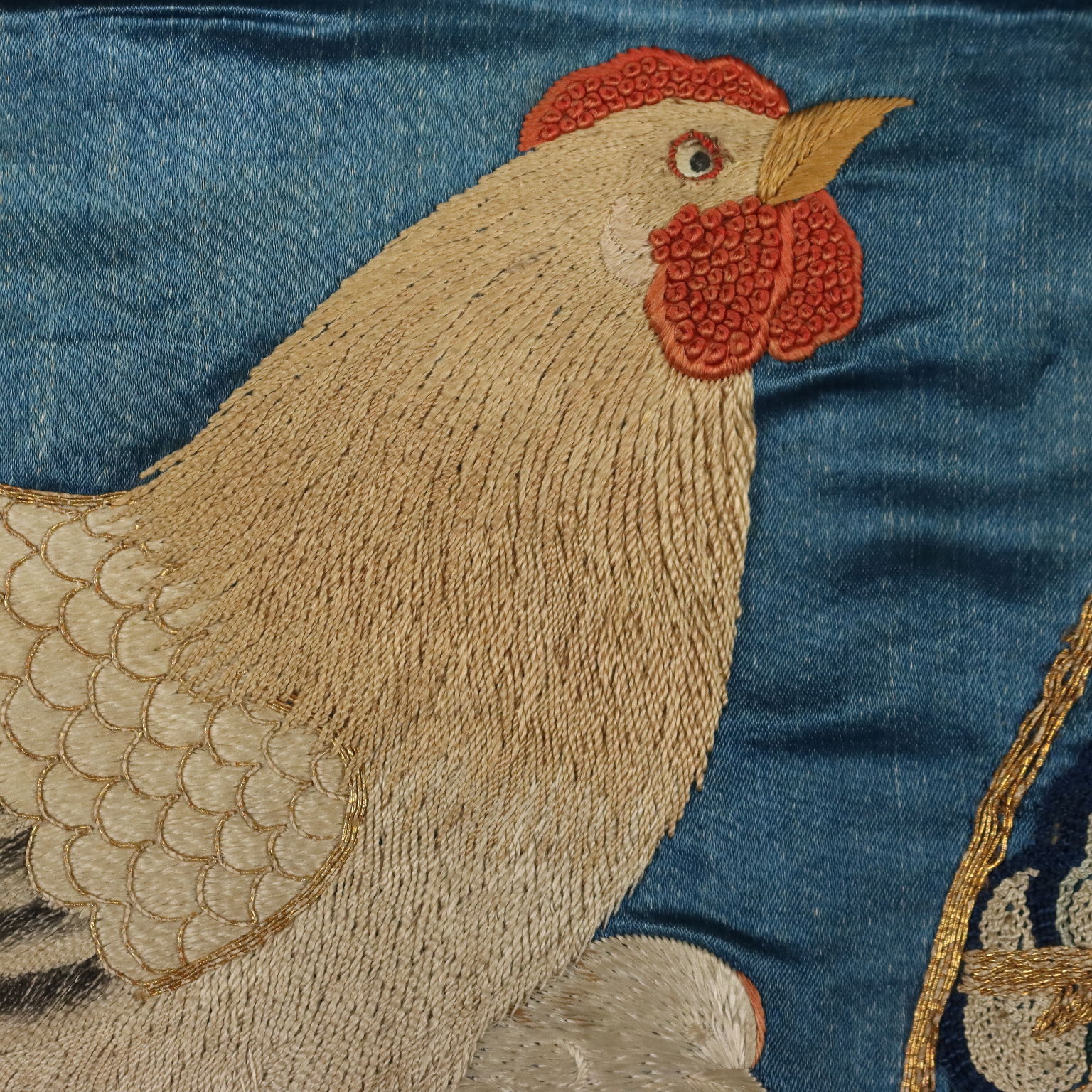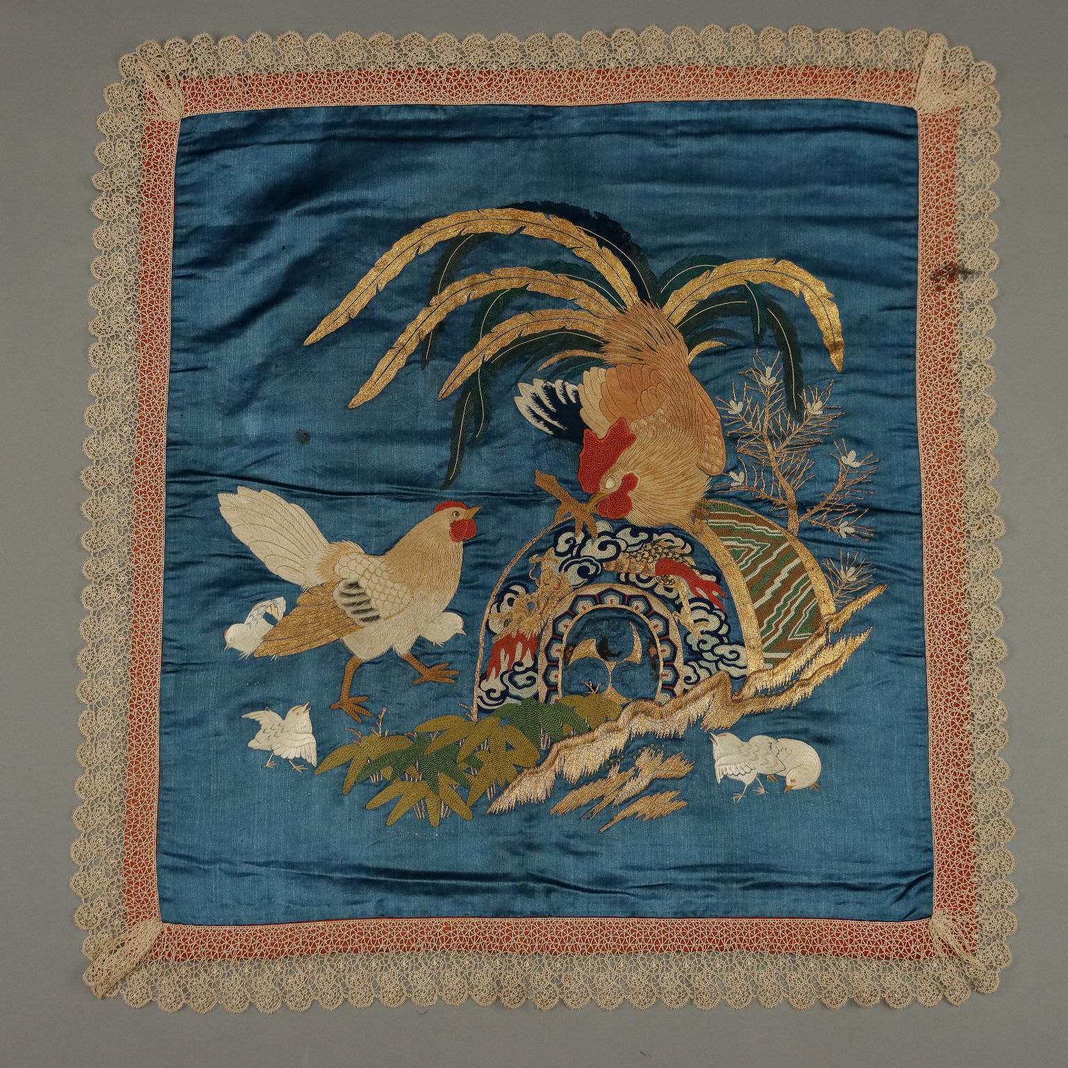 Tela ricamata a mano fine '800 primi '900 a tema rurale, dai colori vivaci impreziosita da un bellissimo pizzo color ecrù Dimensioni cm 86 x cm 80
