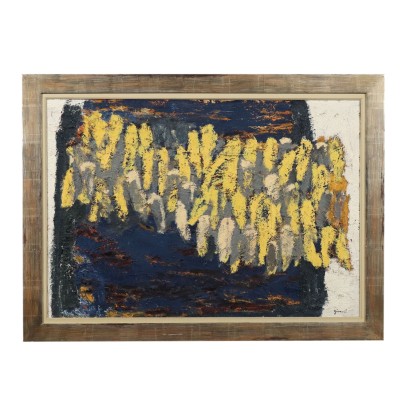 Olio su tela. Firmato in basso a destra. Al retro ulteriore firma e il titolo; presente inoltre etichetta della Galleria d'arte Ponte Rosso, con il titolo e la data. L'artista milanese Piero Giunni, dalla figuratività delle vedute e paesaggi dei primi anni Quaranta evolve presto verso l'astrattismo accostandosi negli anni Sessanta alla poetica dell'Informale europeo. Ricorrenti nella sua produzione nature morte quali quella proposta. L'opera è presentata in cornice.