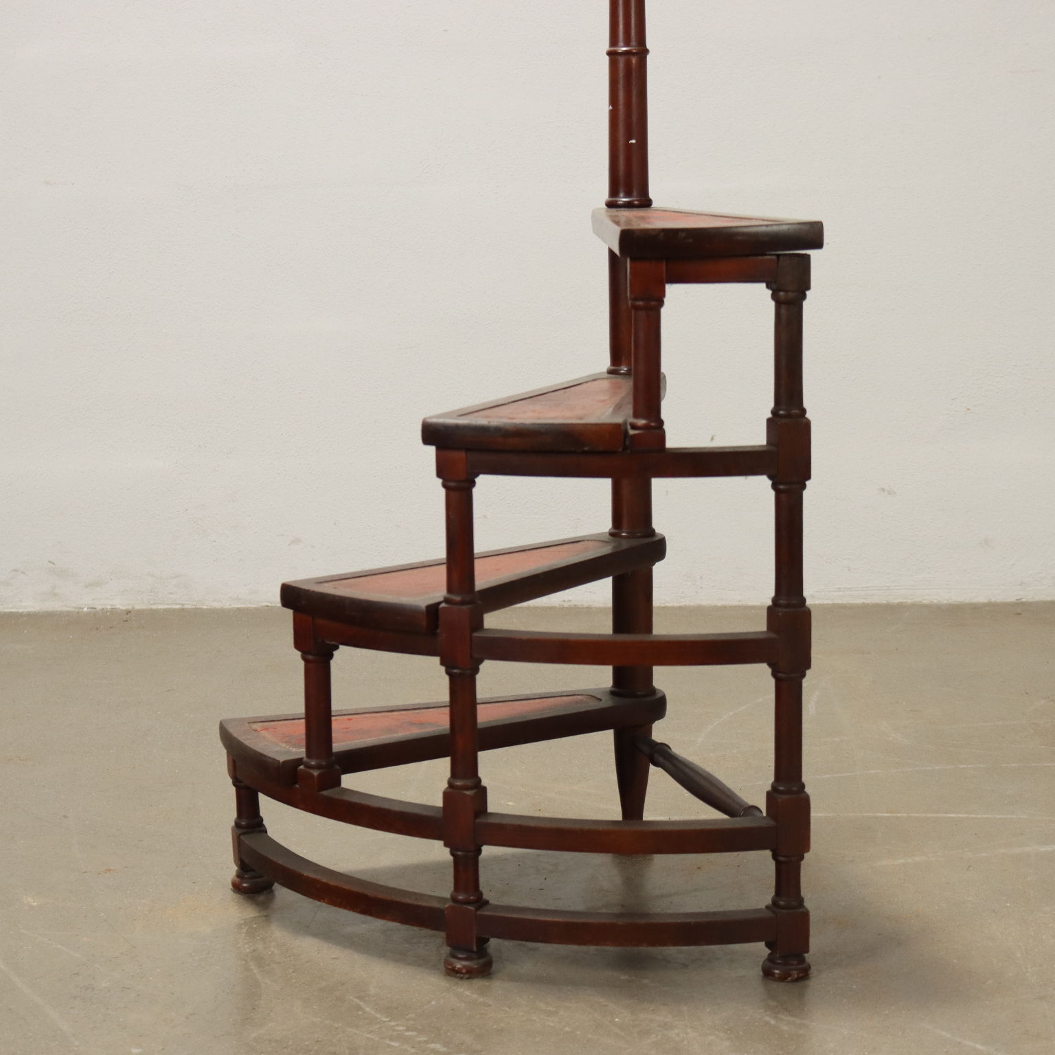 Scaletta da libreria in acero tinto e lavorato a finto bambù, Inghilterra inizio XX secolo. Composta da montante e da quattro gradini dotati di inserto in marocchino.