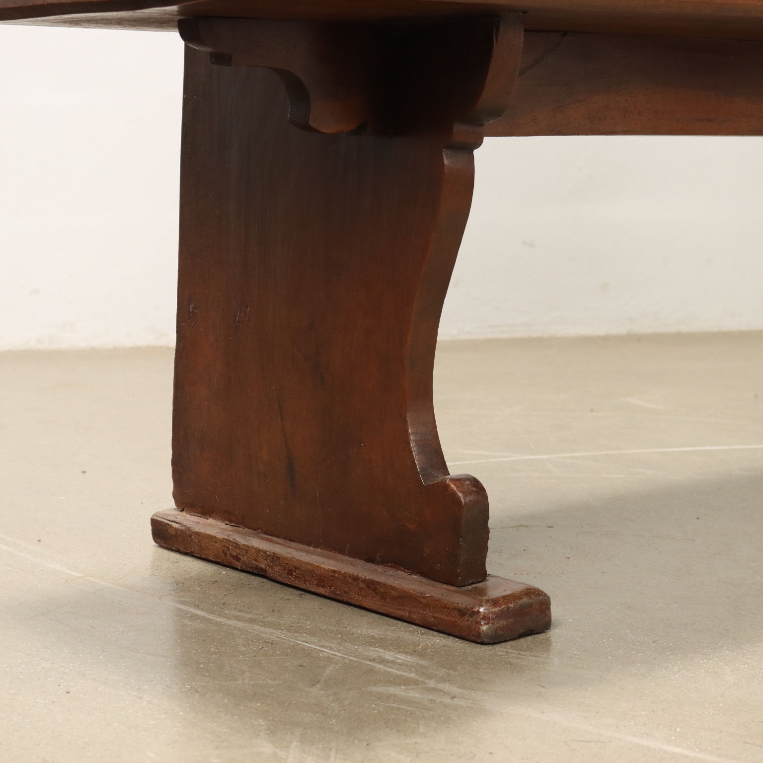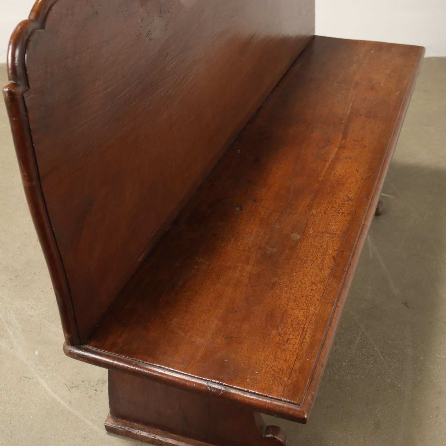 Panca barocco in noce, Italia inizio XVIII secolo. Schienale sagomato modanato su entrambi i lati.