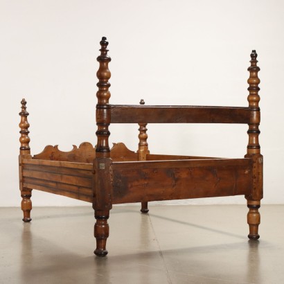 Letto settecentesco una piazza e mezza in noce, Italia XVIII secolo. Montanti torniti, pediera con fronte sagomato e scanalato. Restauri.