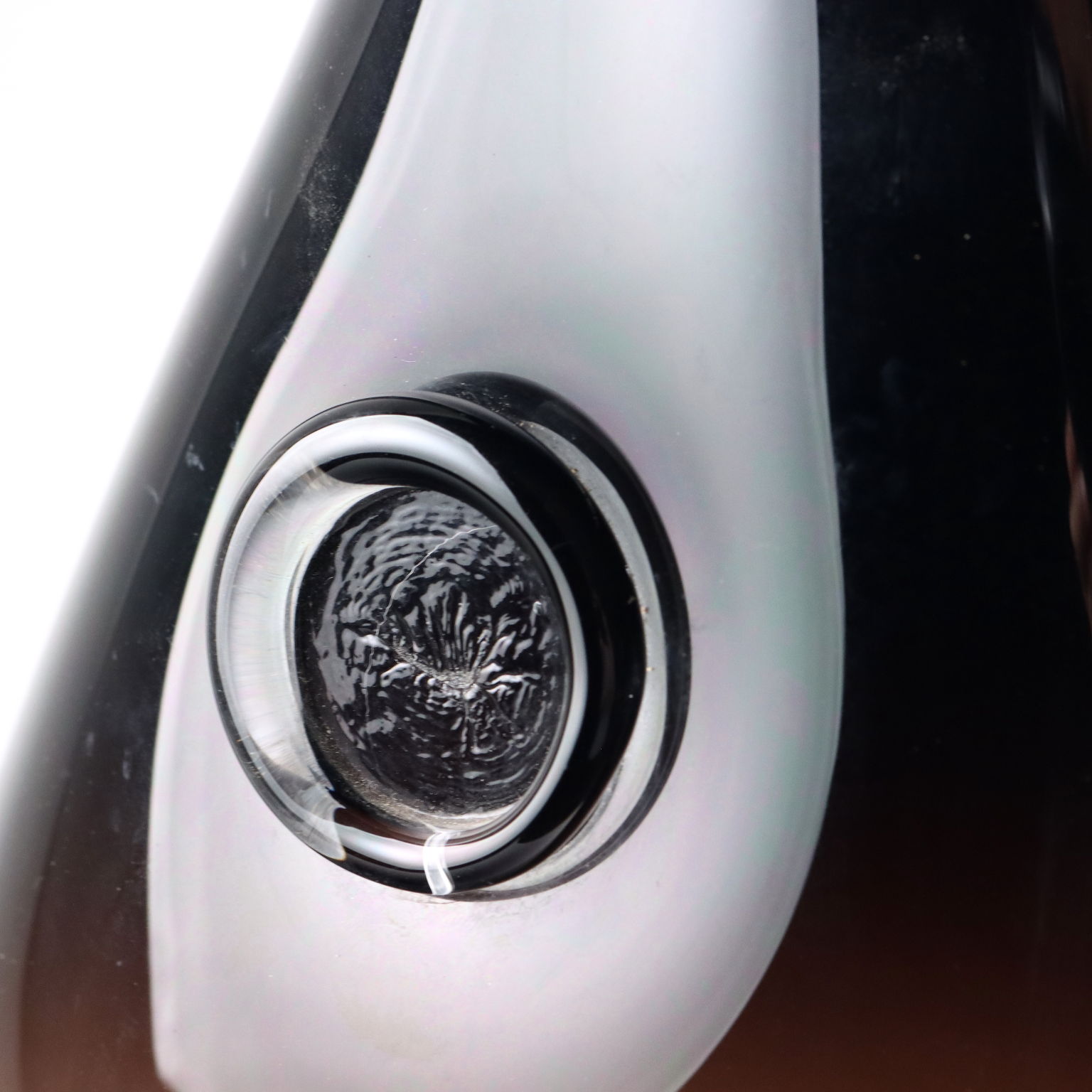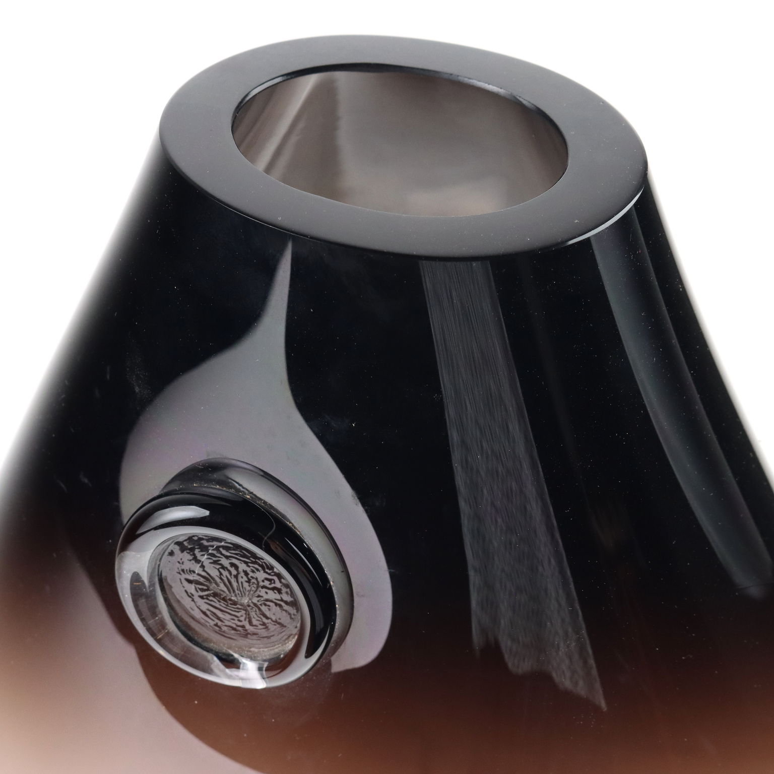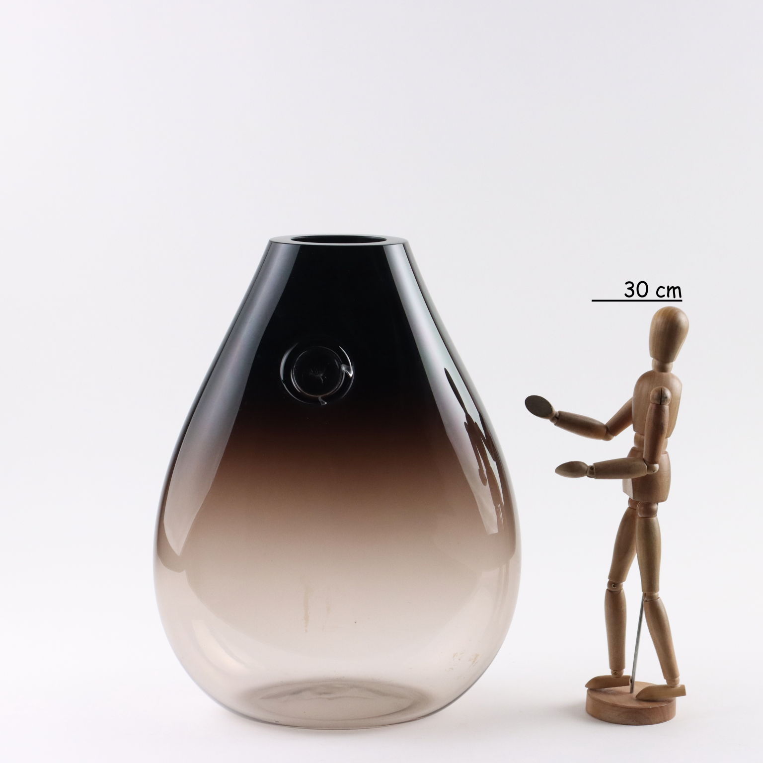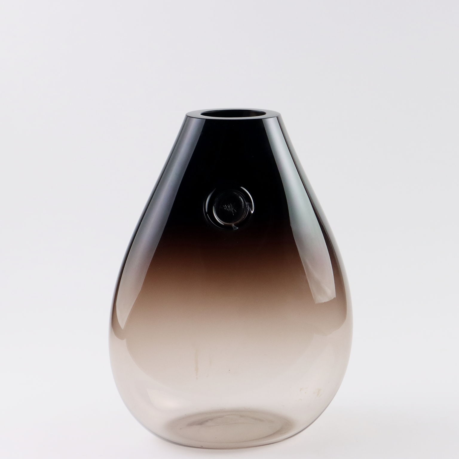 Vaso a goccia in vetro soffiato. Sotto la base firma a punta della manifattura.