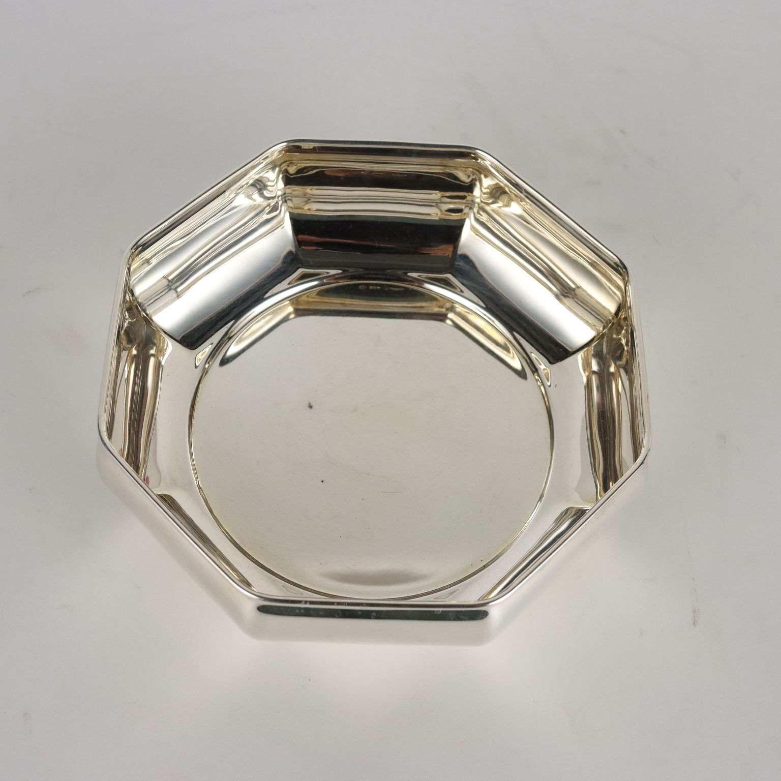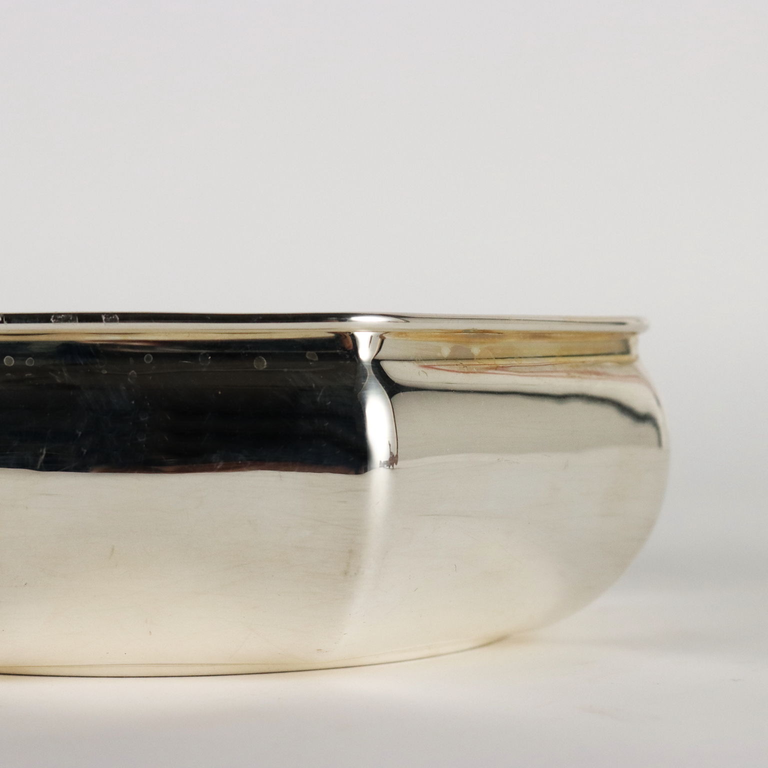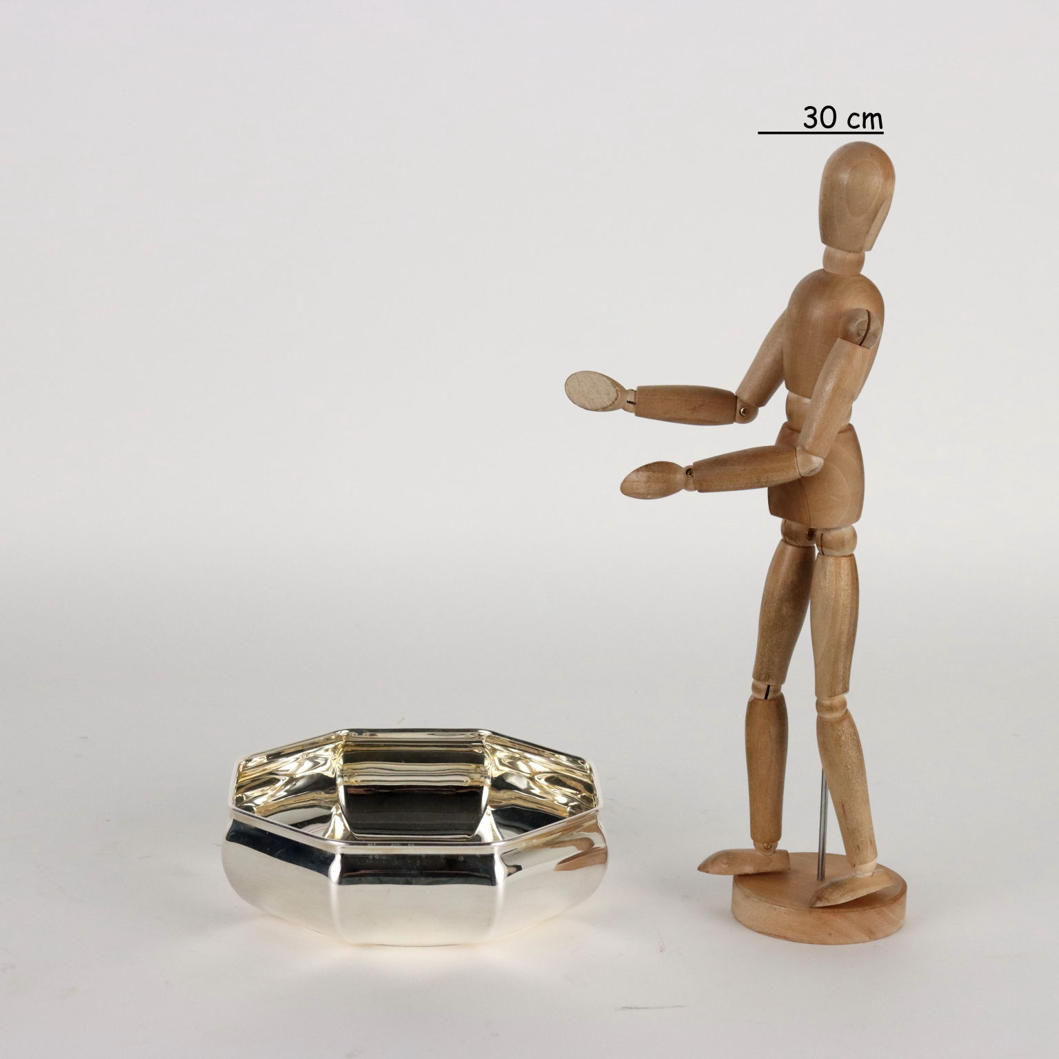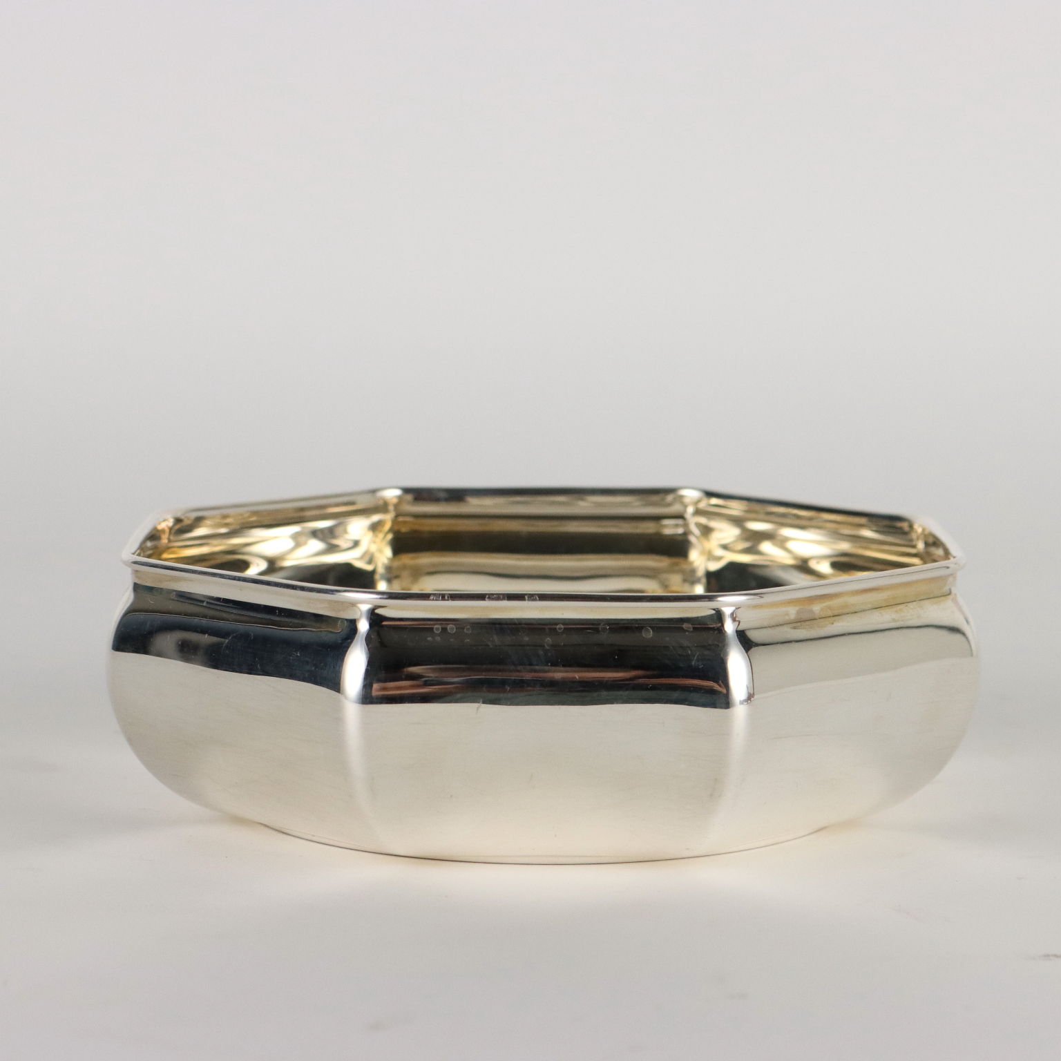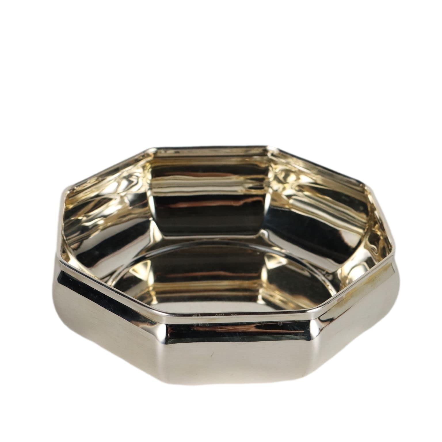 Ciotola in argento di forma ottagonale. Sul fondo marchi dell'argento e dell'argentiere incussi. Grammi 205.
