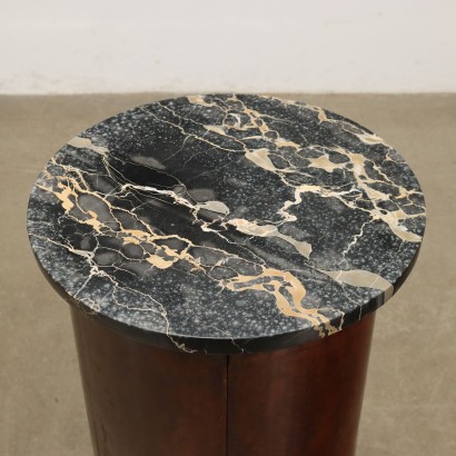 Comodino Impero a colonna in noce, base ottagonale, casetto interno sottopiano. Piano in noce, con aggiunto piano in marmo nero portoro. Italia, inizio XIX Secolo.