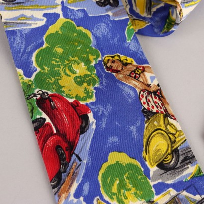 Cravatta a tema estate in Vespa. Fodera interna con rappresentazione di una pin-up.