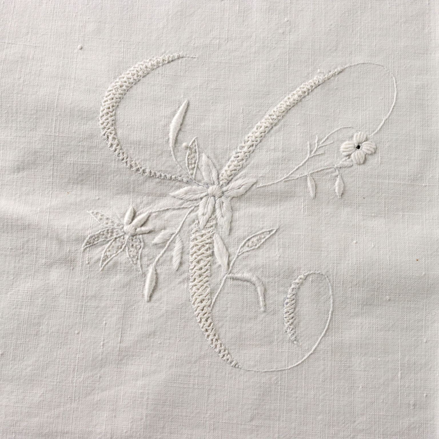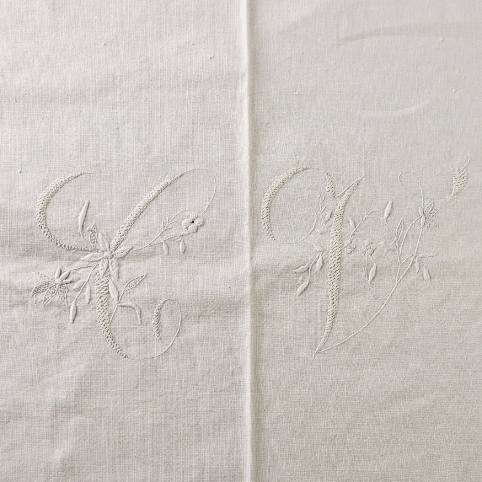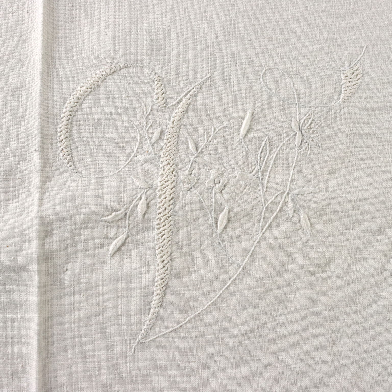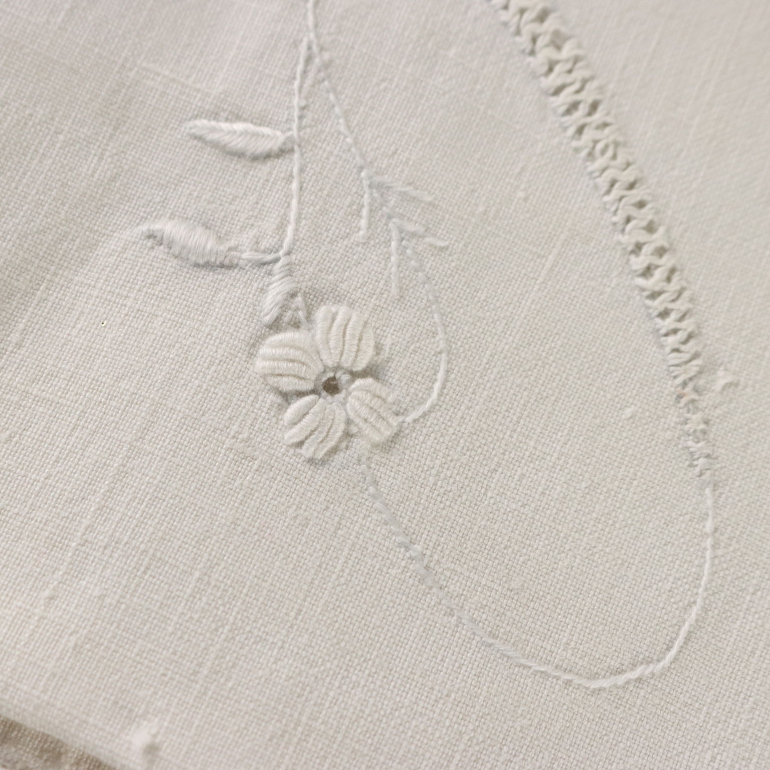 Finta matrimoniale con ricamo centrale in punto pieno e alta bordura con lavorazione ad ago Alcuni segni del tempo Colore bianco Composizione lino grezzo Dimensioni Cm 200 x cm 83 bordura cm 12