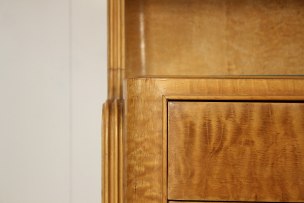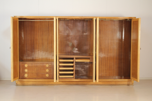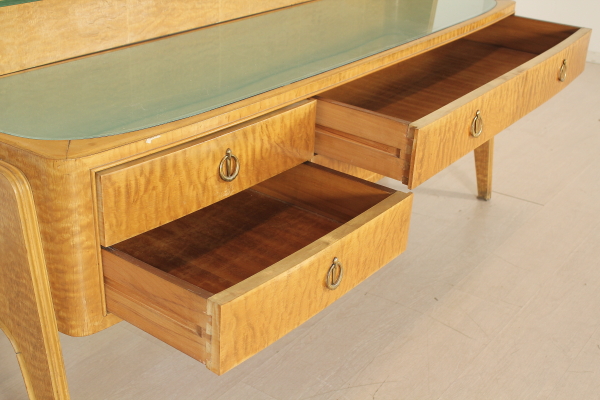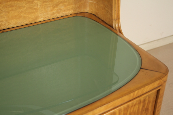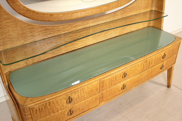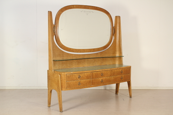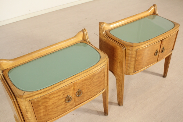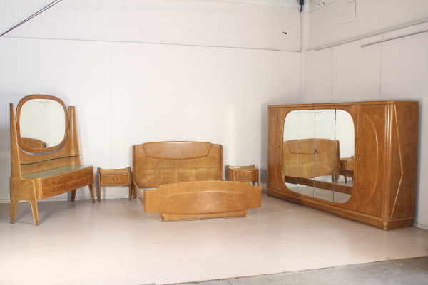 Camera completa; legno impiallacciato radica, vetro retro verniciato, specchi. Composta da: Armadio 185x325x62 Letto 95x180x210 Comodini 62x62x33 Petineuse 195x180x52 Buone condizioni, presenta piccoli segni di usura.