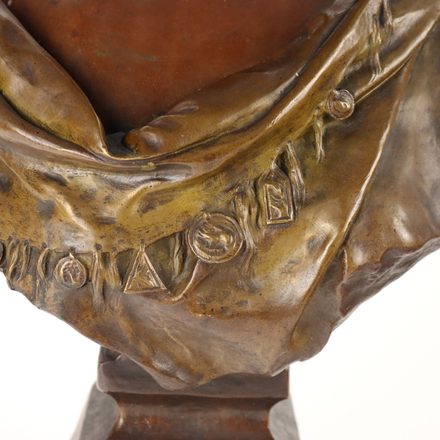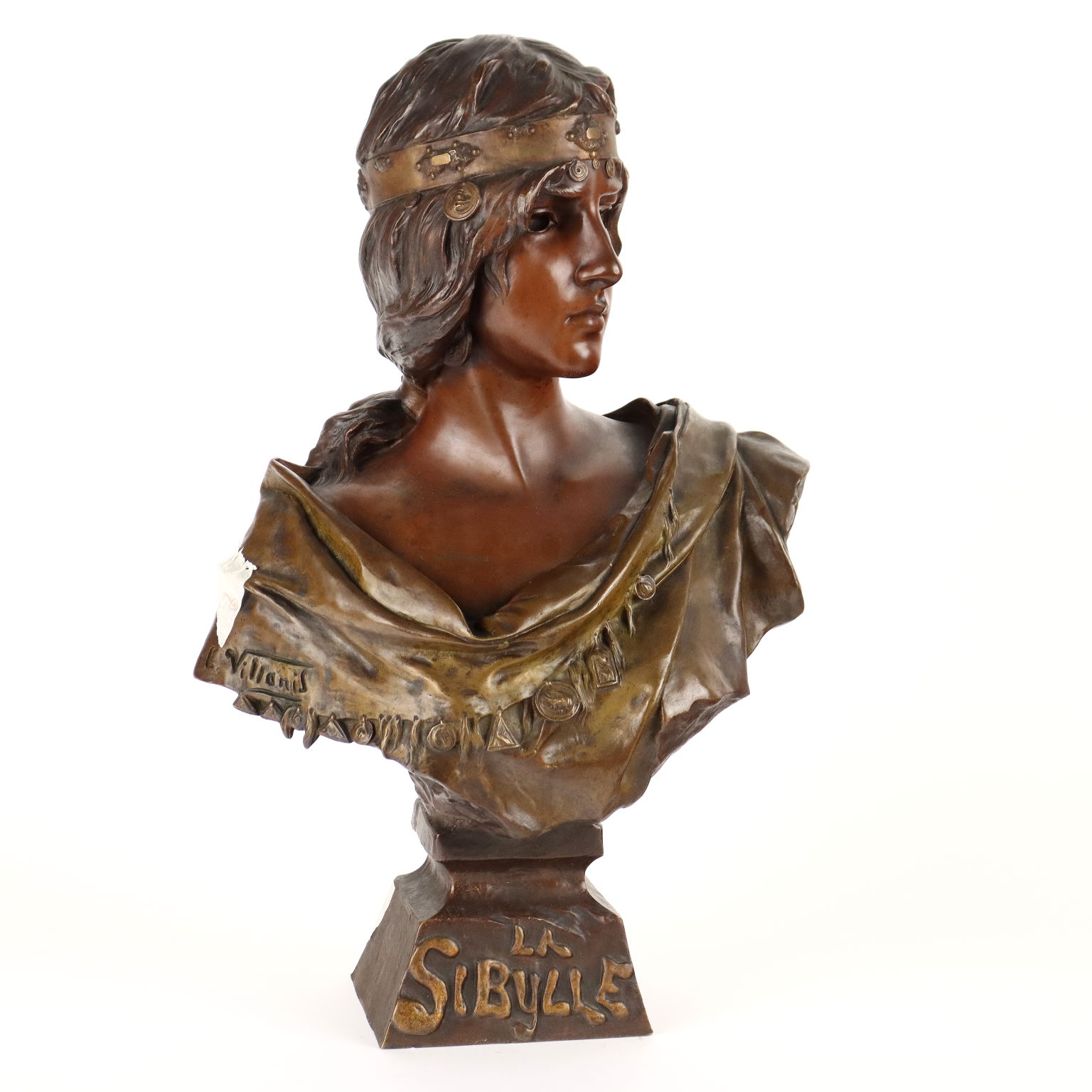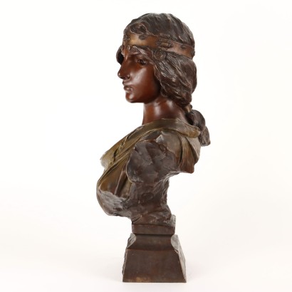 Busto in bronzo raffigurante La Sibilla. Firma incussa dell'autore sul vestito; dietro marchio circolare "Societè des bronzes de Paris".