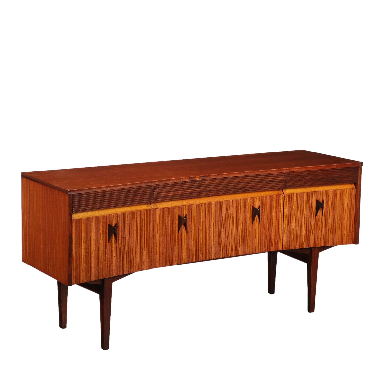 Mobile a cassetti, frontali "grissinati" maniglie in ottone, legno impiallacciato teak, accuratamente e completamente restaurato dal nostro laboratorio.