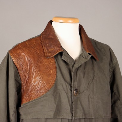 Giaccone casual in tessuto verdone, con inserti in pelle. Il capo ha un'allacciatura monopetto ed è accessoriato con molte tasche interne ed esterne. Vestibilità abbondante. Lunghezza manica: 67 cm. Larghezza spalle: 54 cm. Lunghezza: 80 cm.