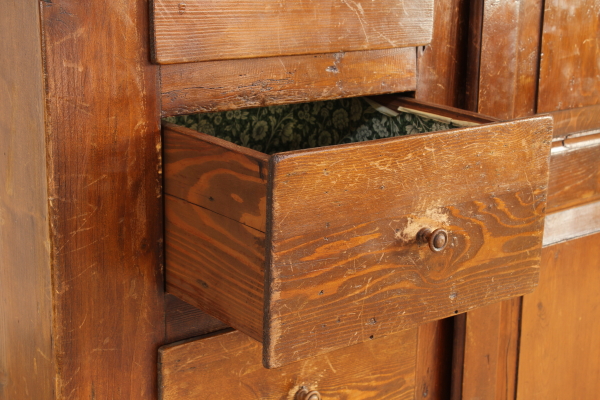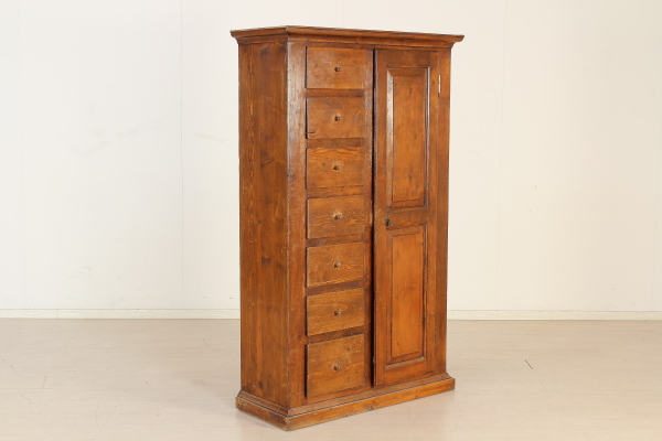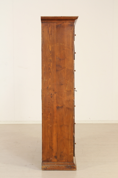 Retta da zoccolatura presenta sette cassetti e un anta con ripiani interni.