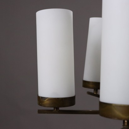 Lampada a soffitto in ottone e alluminio smaltato; diffusori in vetro opalino. Buone condizioni