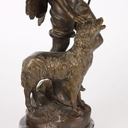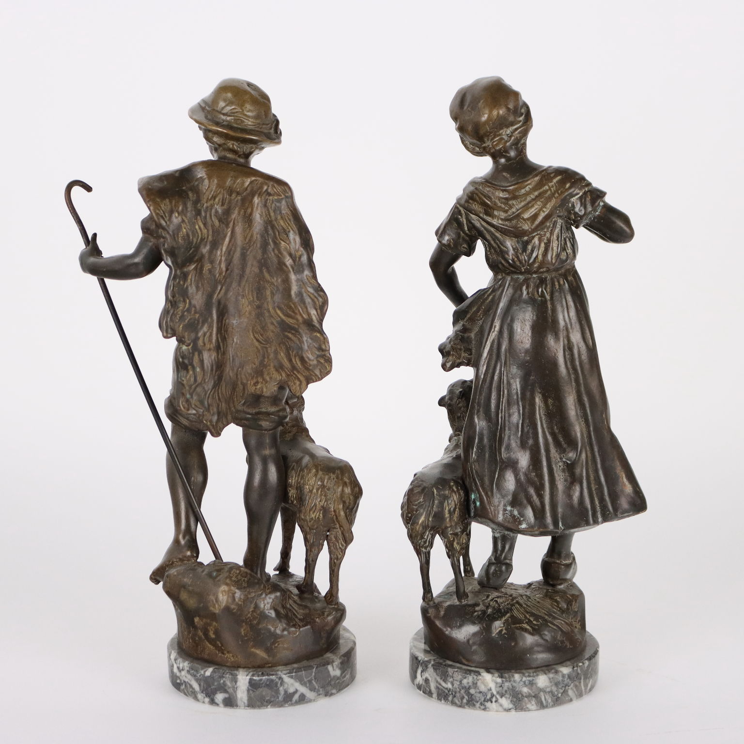 Coppia di sculture in bronzo su base in marmo raffiguranti figure di popolani. Autore anonimo.