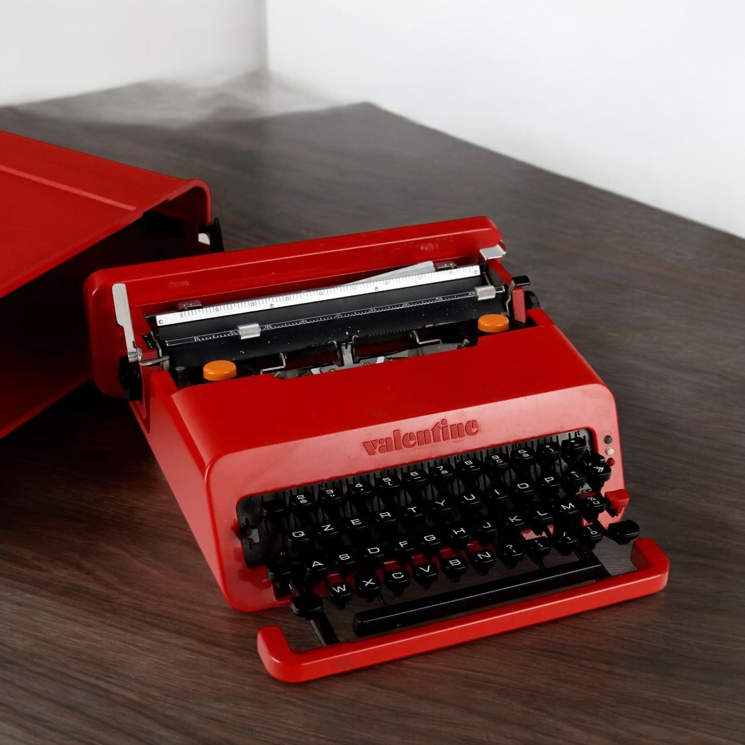 Macchina da scrivere Olivetti Valentine Ettore Sottsass color rosso.