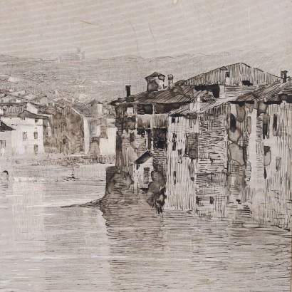 Dipinto di Bartolomeo Bezzi - Scorcio di Verona