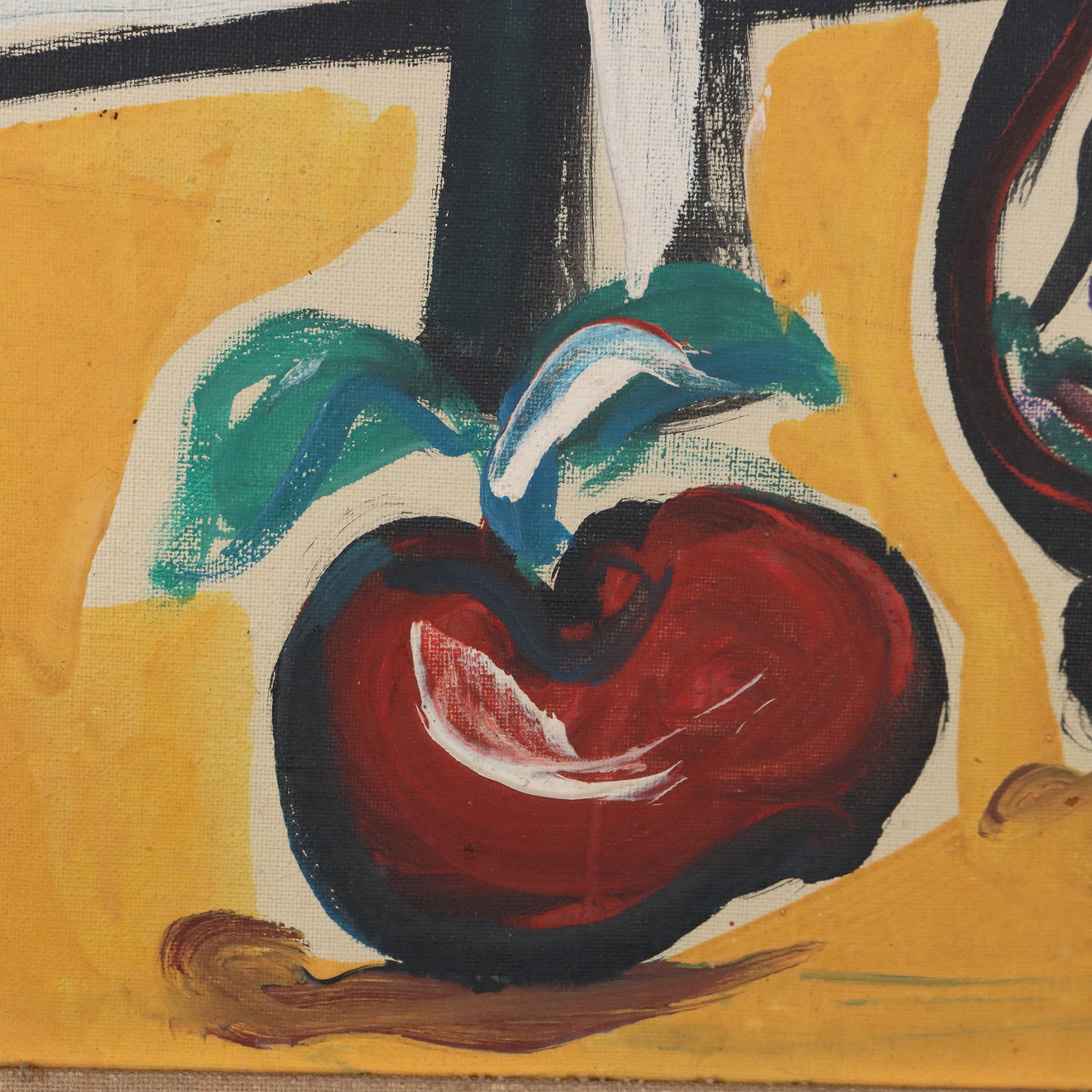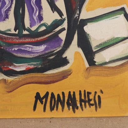 Olio su tela. Firmato in basso a destra. La composizione riconduce alla produzione di Sante Monachesi degli anni Quaranta-Cinquanta, in cui l'artista, dopo un esordio vicino al Futurismo, passa a esprimere la sua poetica figurativa attraverso composizioni sintetiche che si dilatano dando spazio ad ampi campi cromatici, ispirati al Neo Cubismo. L'opera è presentata in cornice.