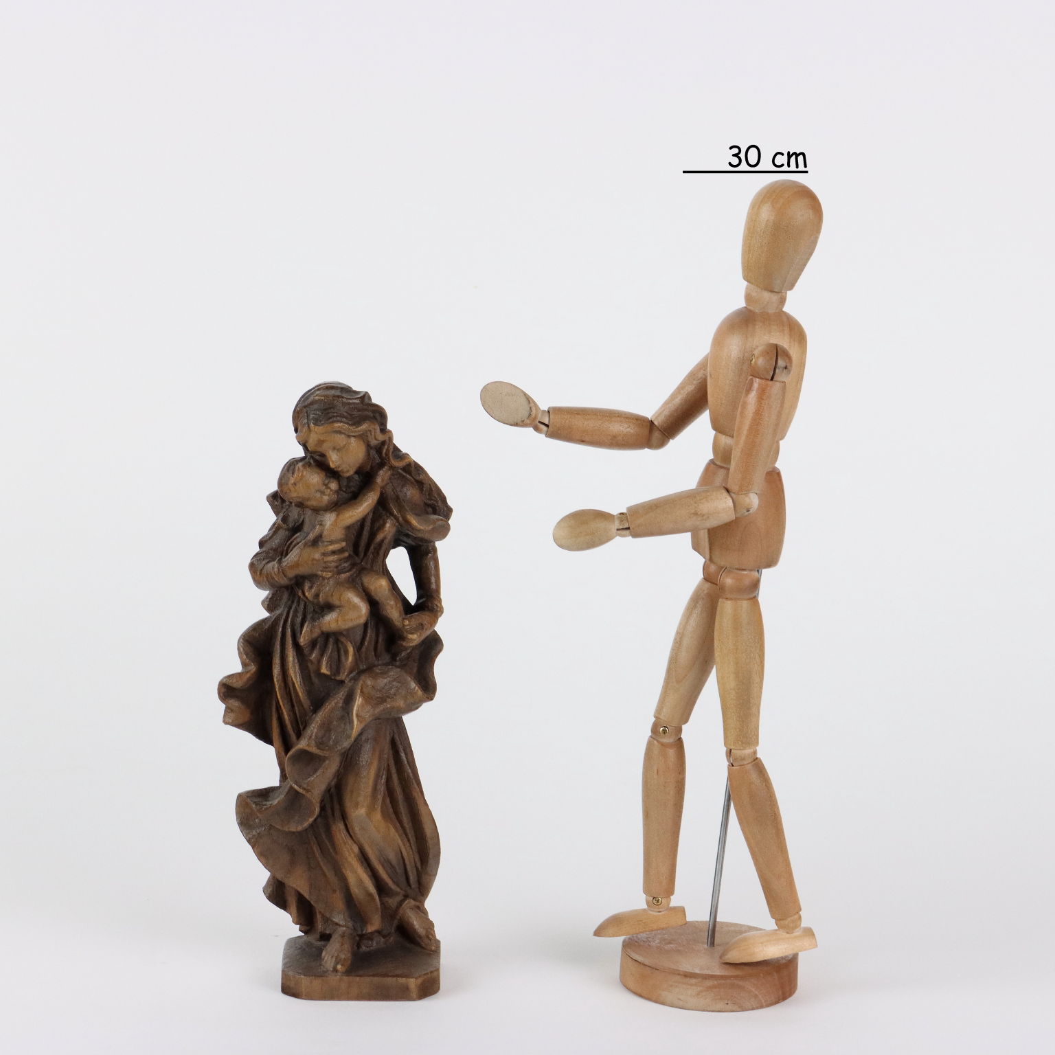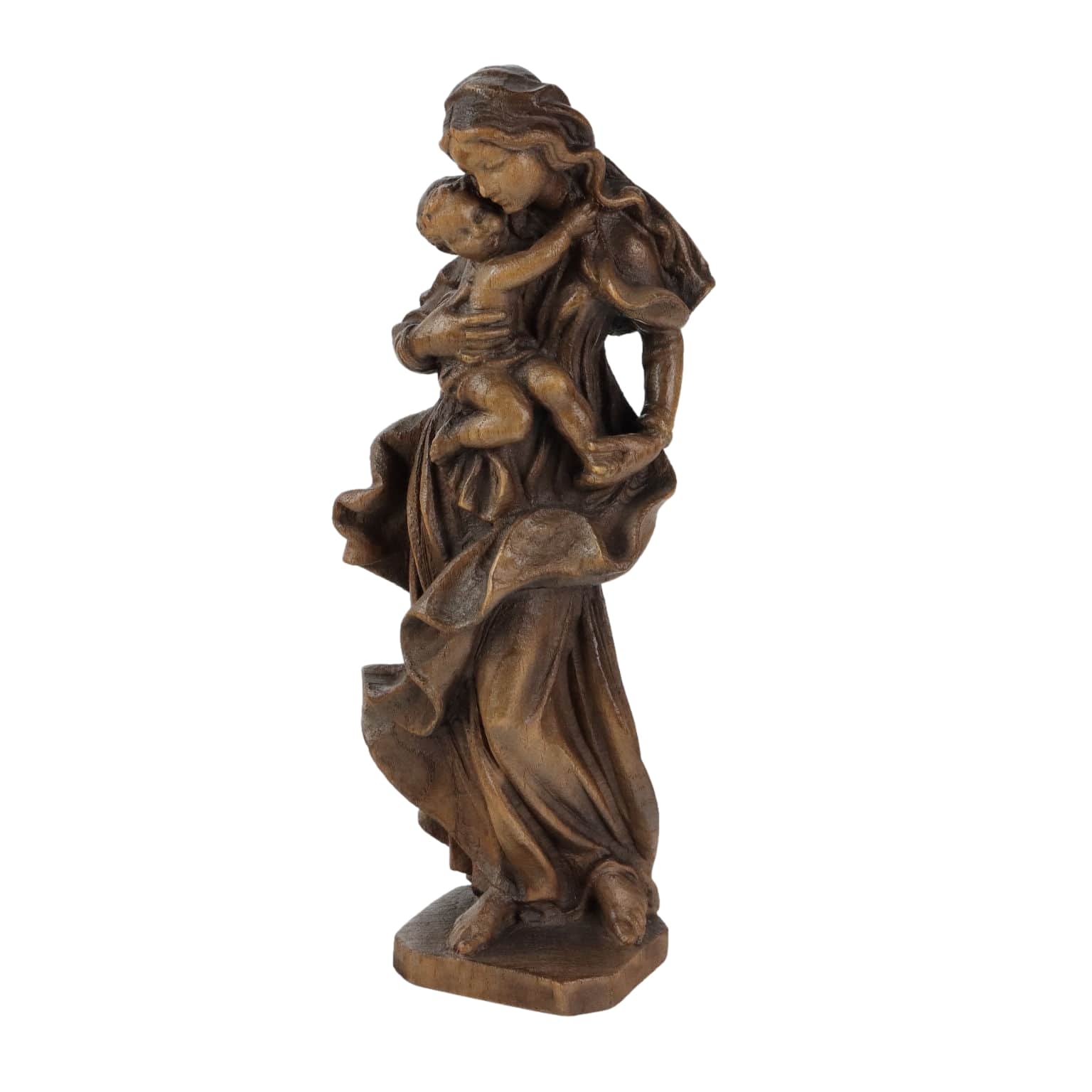 Statua raffigurante Madonna con bambino in legno intagliato.