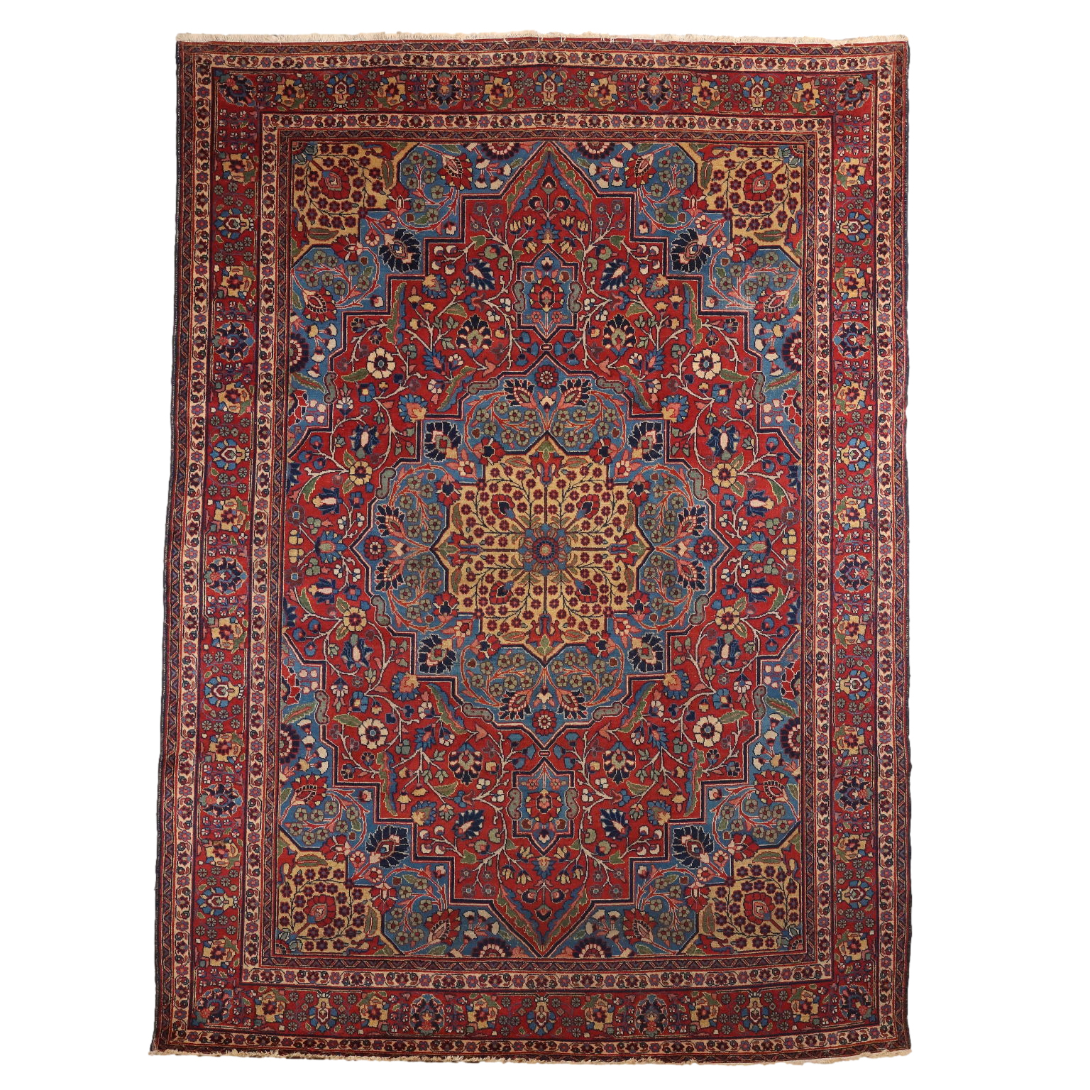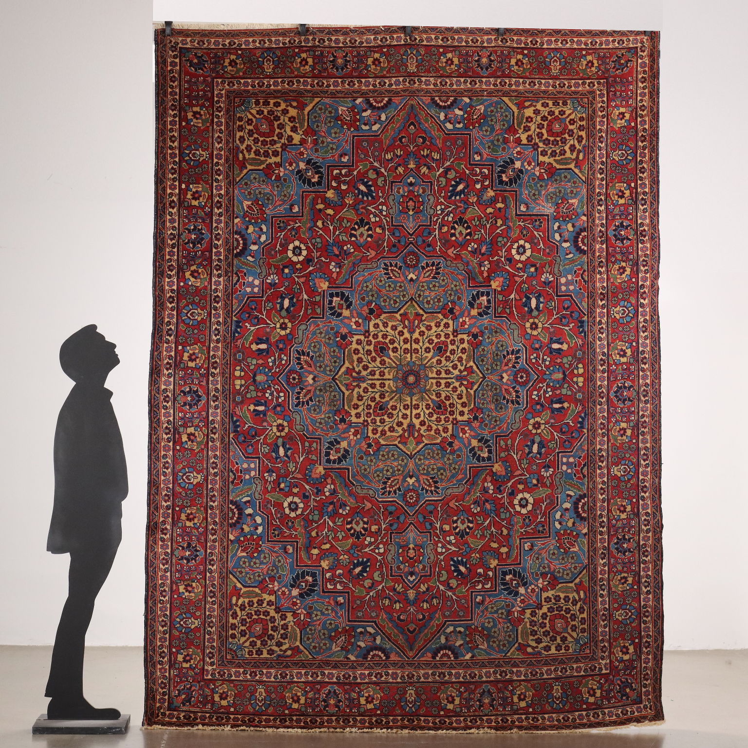 Tappeto Mashad in cotone e lana, nodo fine, fabbricazione manuale.