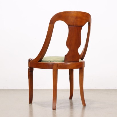 Gruppo di quattro sedie Impero a gondola, in ciliegio. Schienale a giorno avvolgente, gambe mosse, seduta imbottita. Italia, inizio XIX Secolo.
