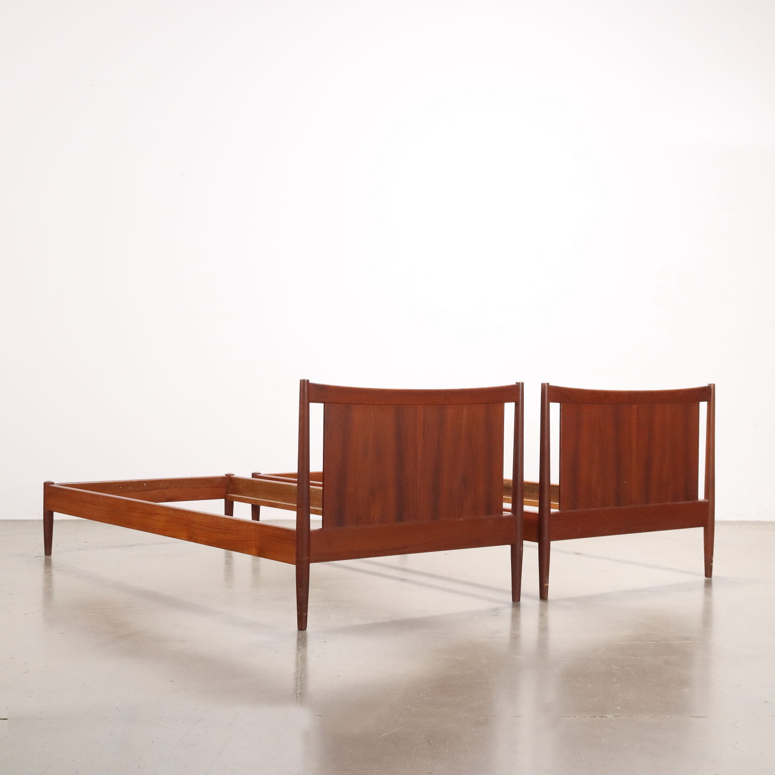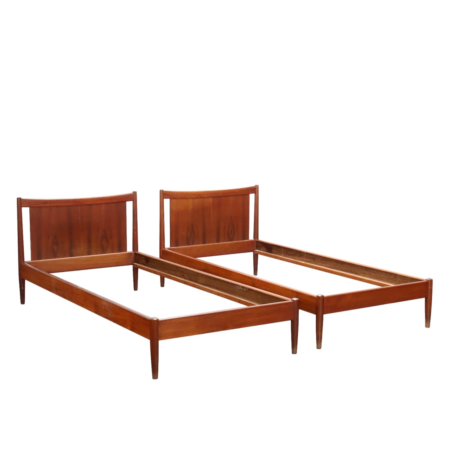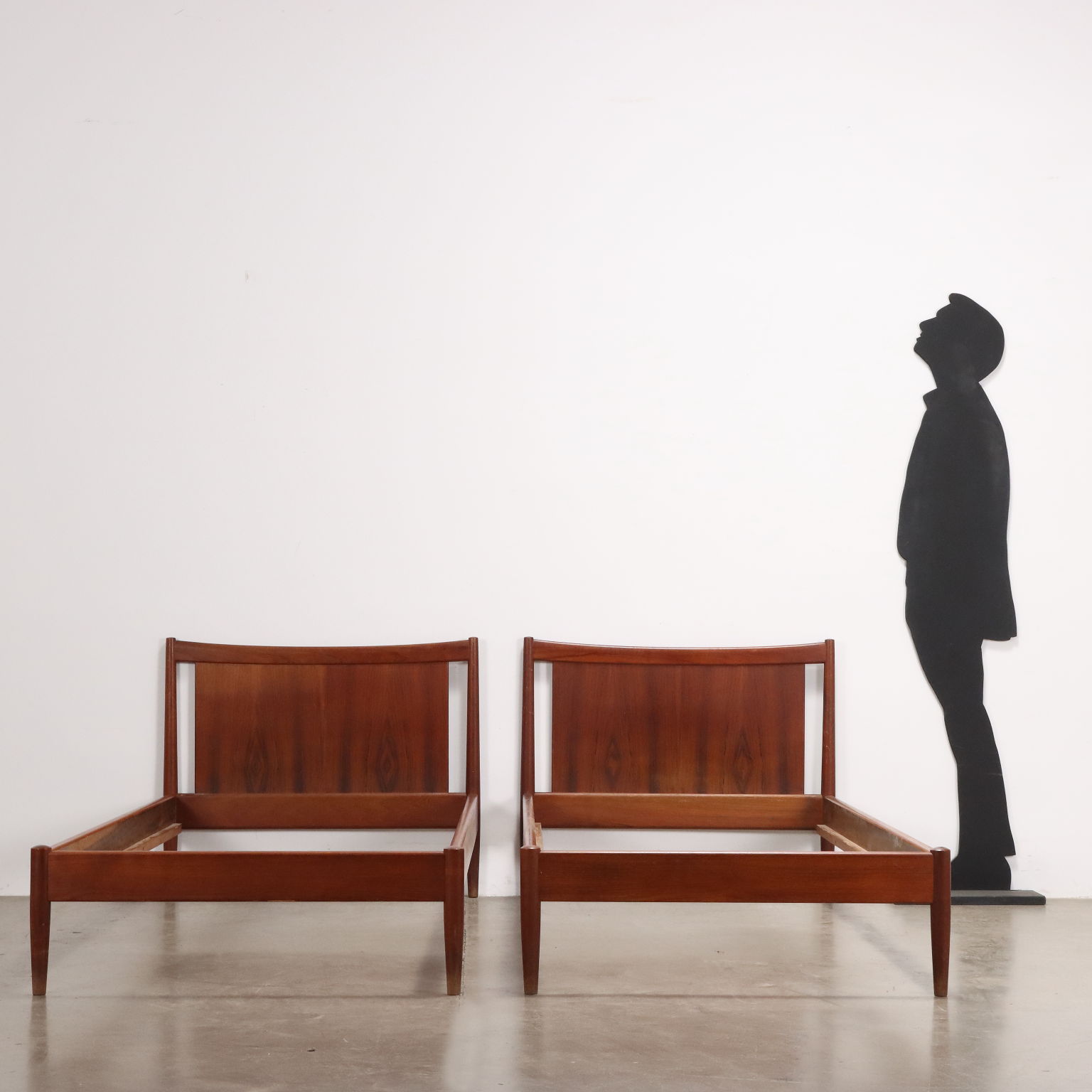 Coppia di letti singoli vintage con struttura in legno impiallacciato teak.