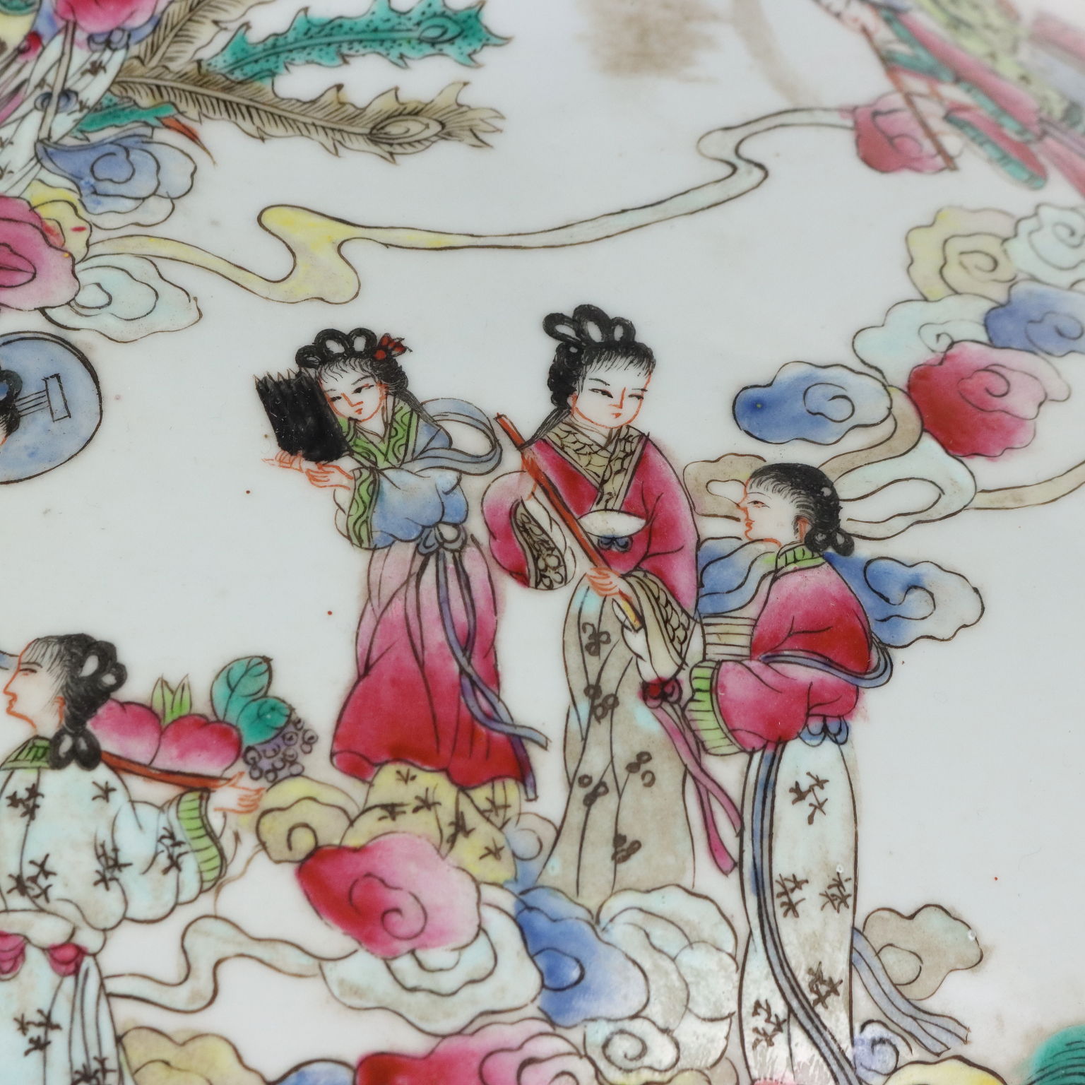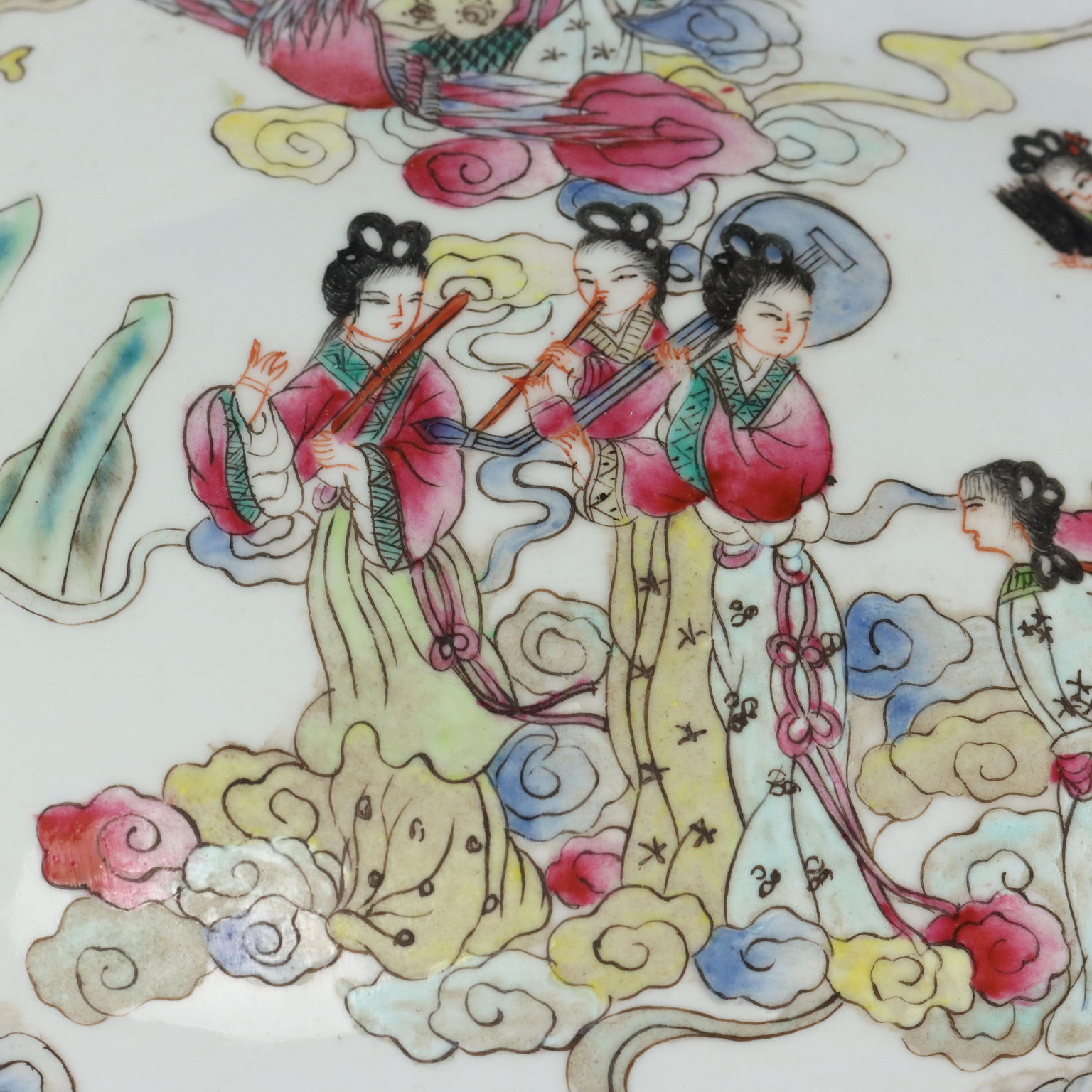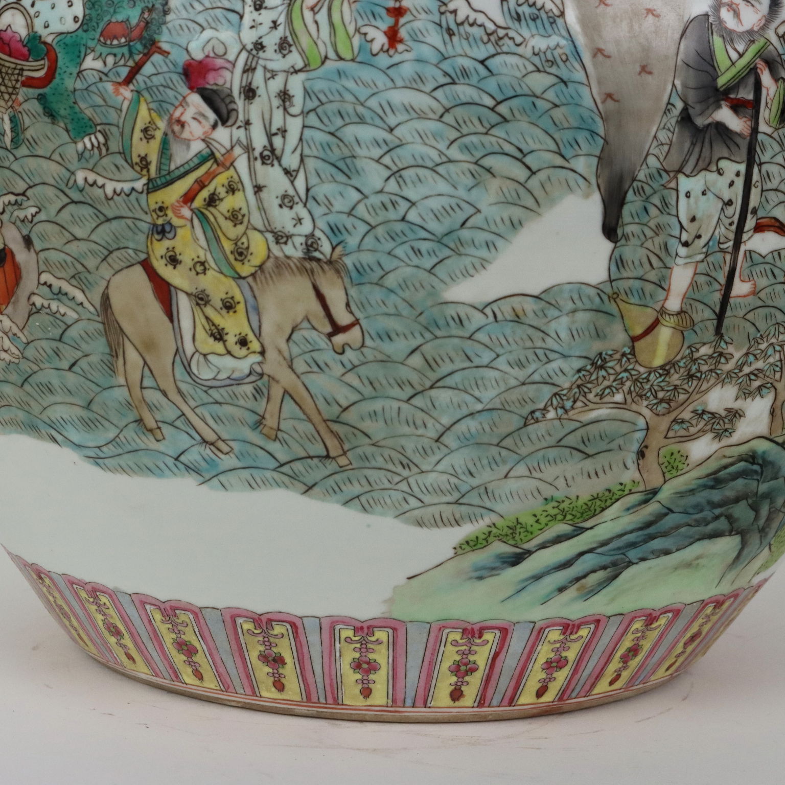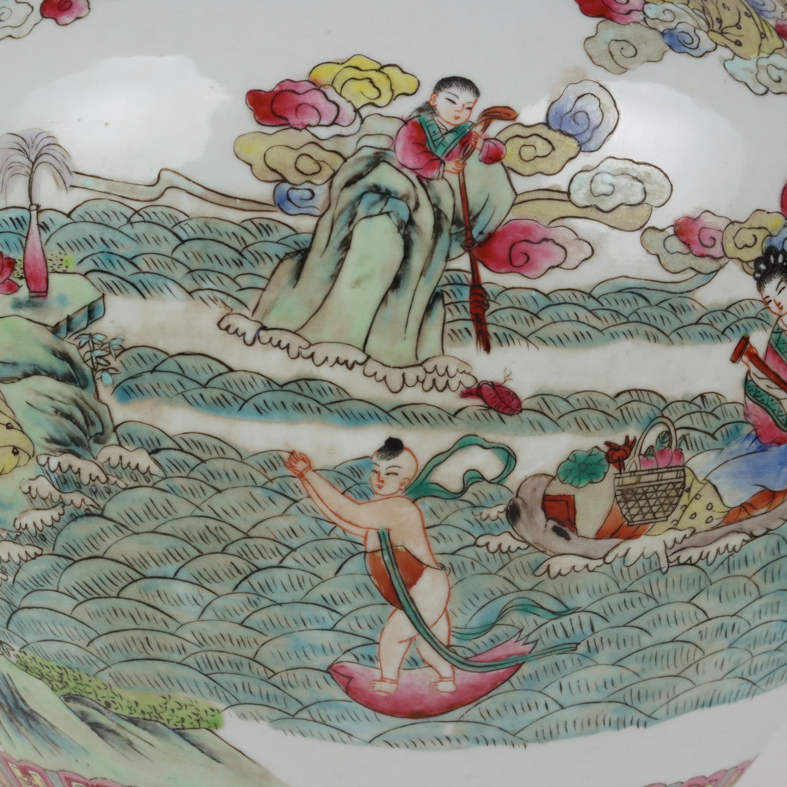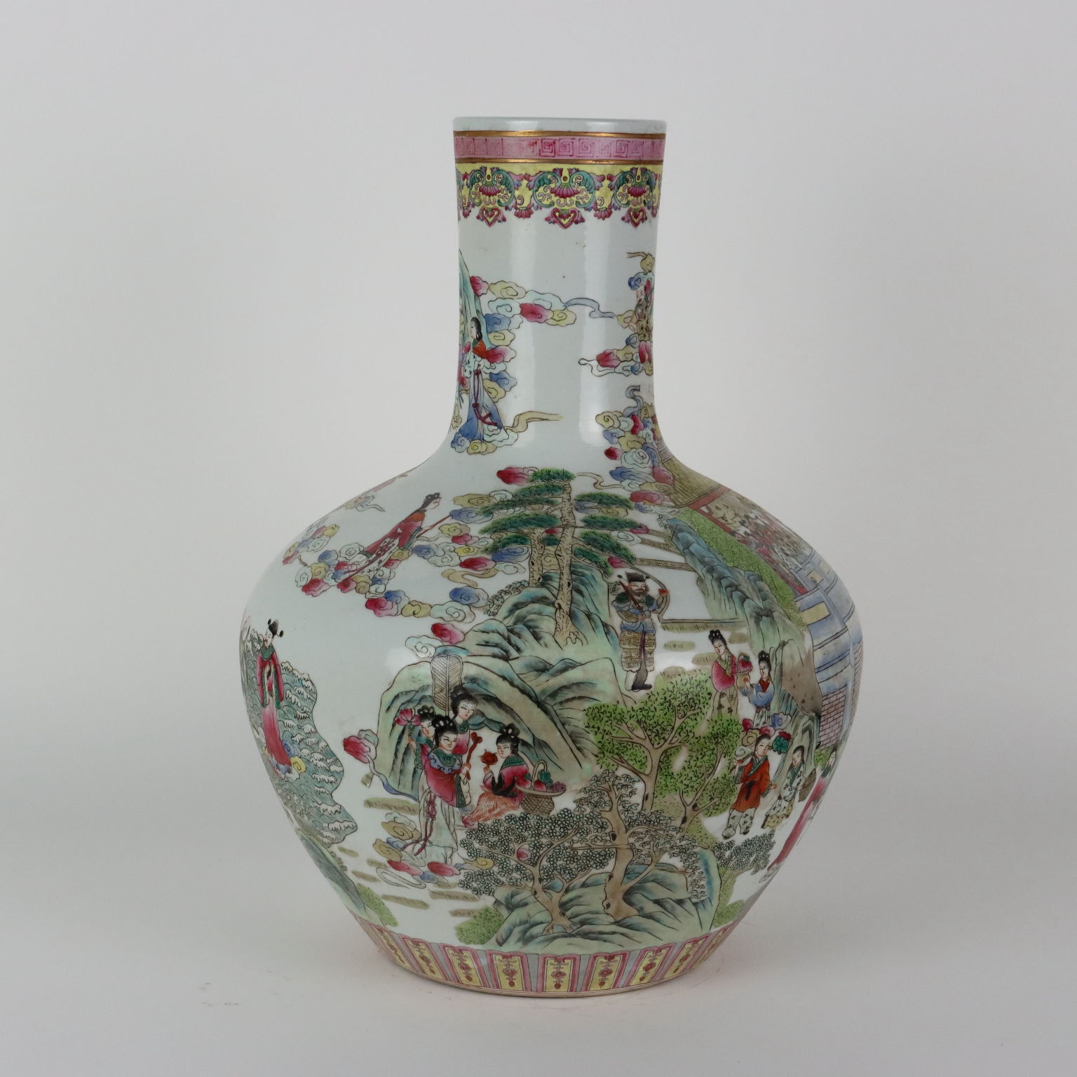 Vaso tianqiuping decorato con scena celestiale di immortali cinesi in un castello circondati dai loro accoliti. Marchio apocrifo Qianlong sotto la base.