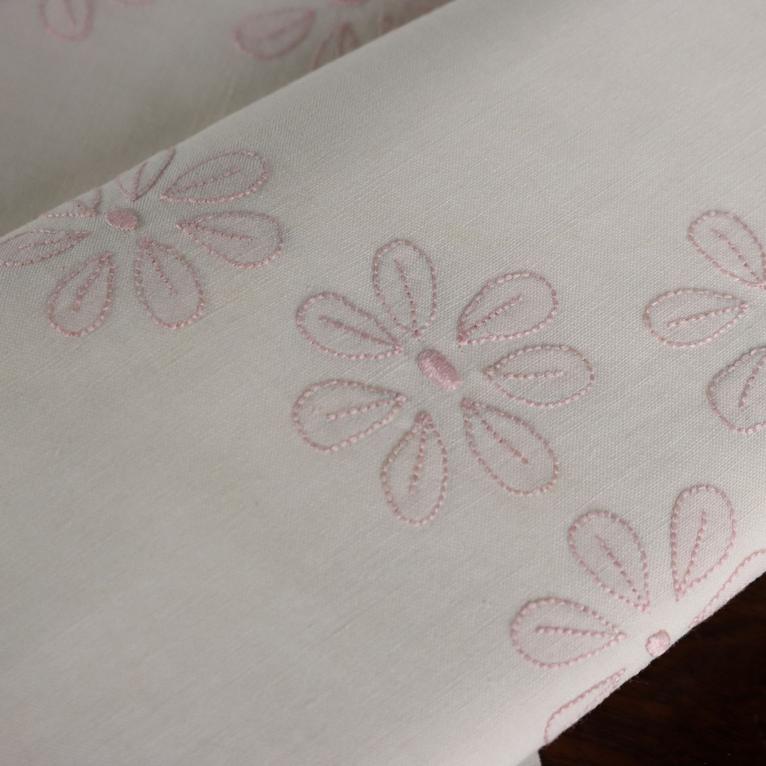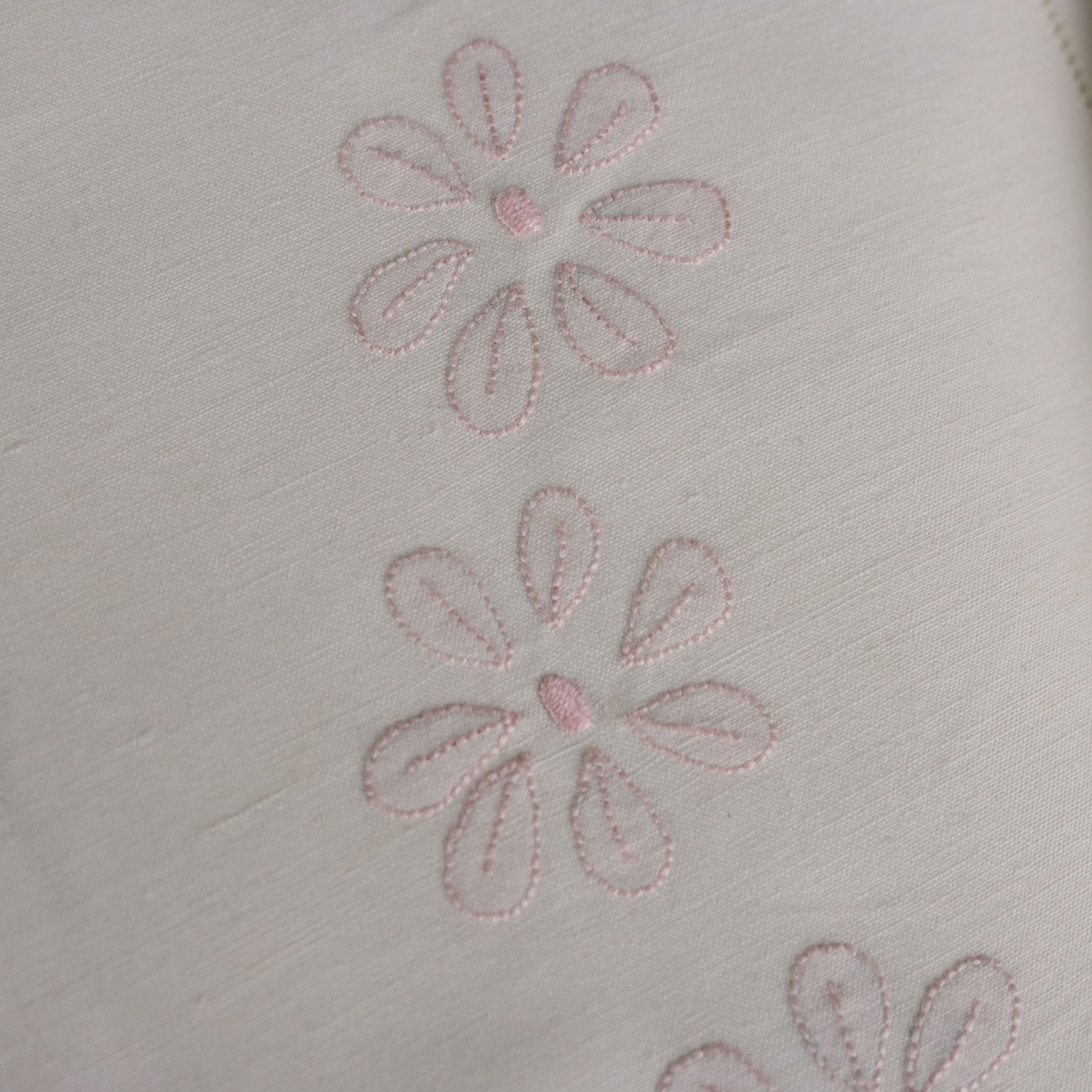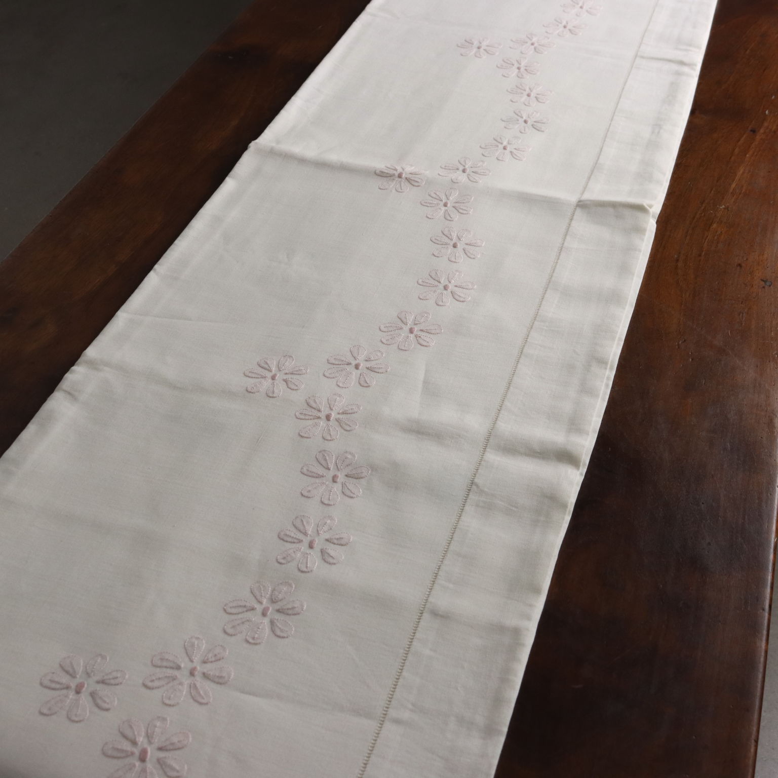 Lenzuolo matrimoniale con due federe. Lavorazione dei fiori a punto ombra di colore rosa antico.
