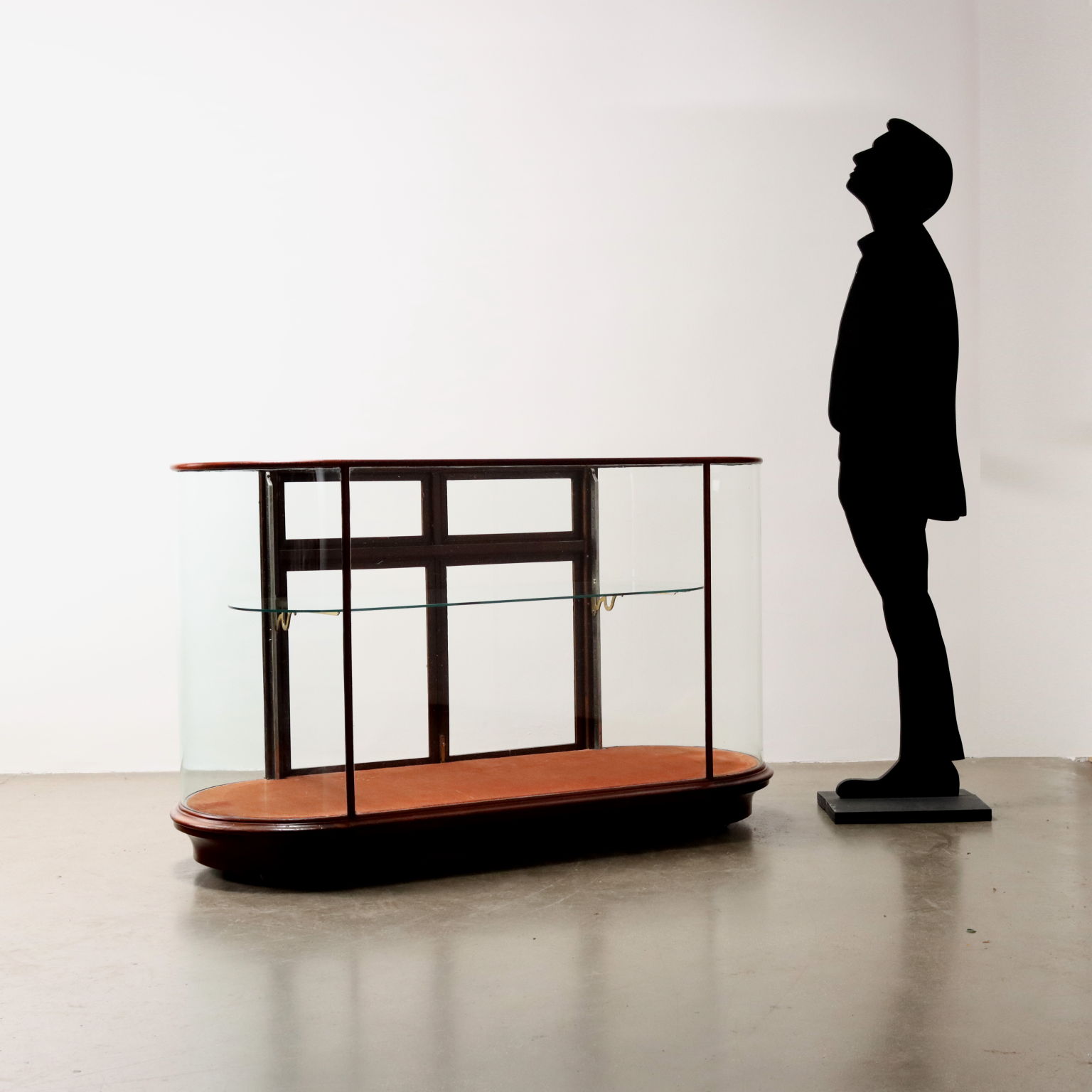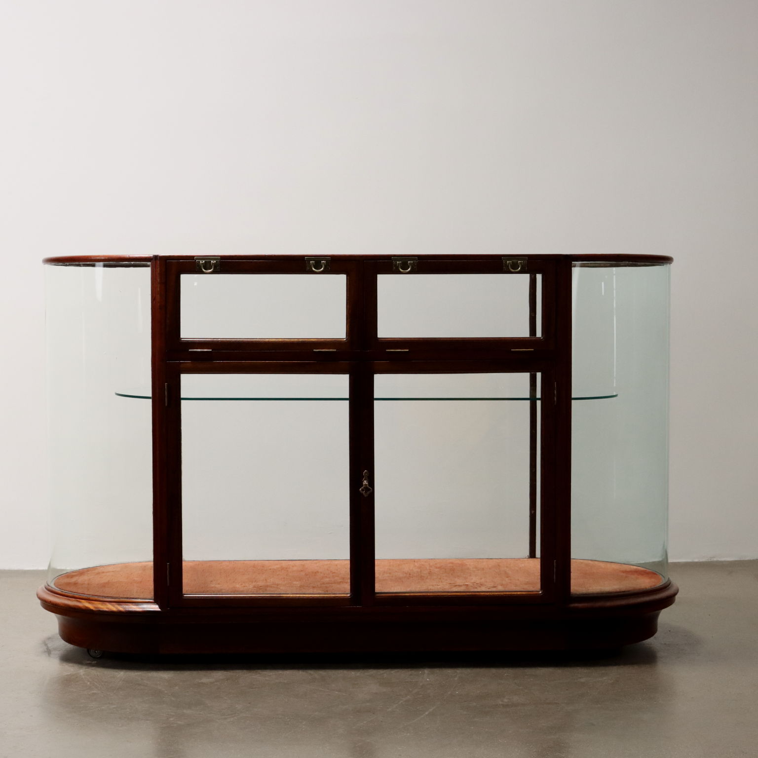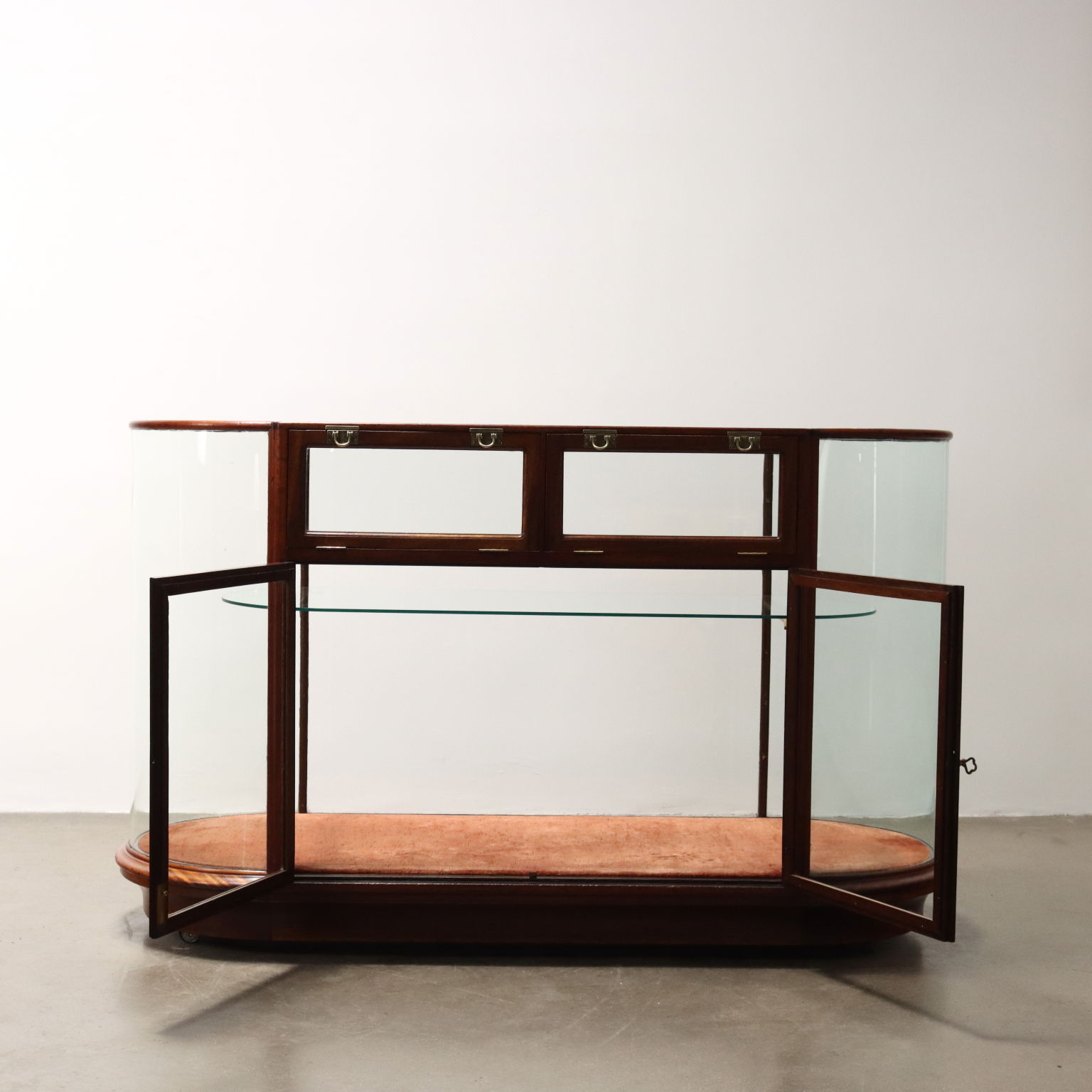 Arredo espositore o banco da negozio vintage di manifattura italiana, presenta la struttura in legno di rovere, ante in vetro, interno con ripiano sempre in vetro e piccoli cassetti. Restaurato.