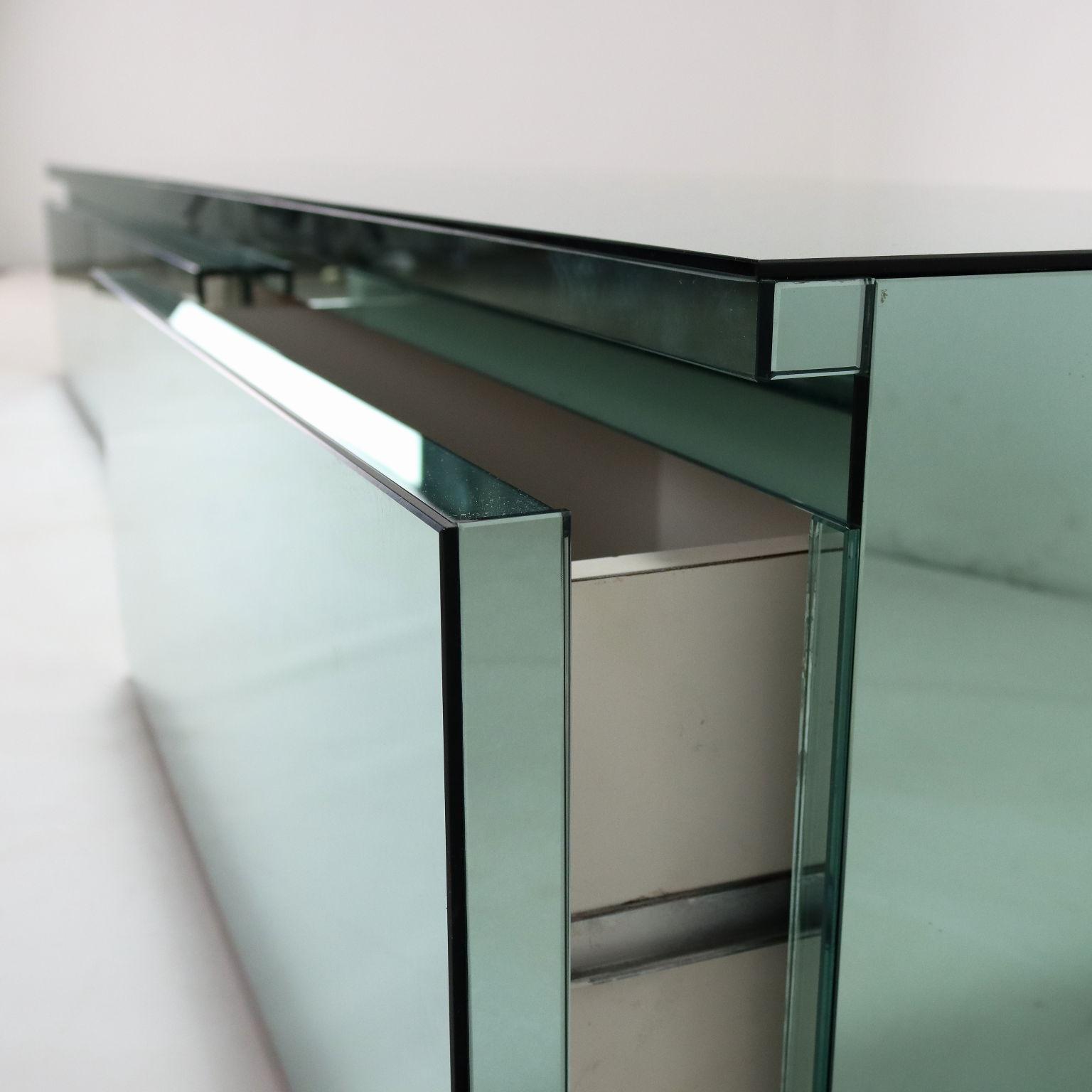 Mobile da Soggiorno in Vetro Specchiato - Manifattura italiana anni '70
