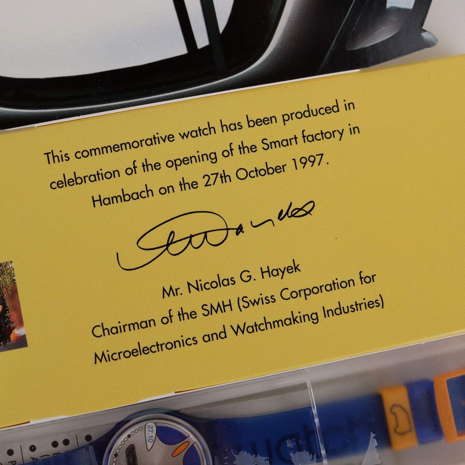 Cofanetto celebrativo con orologio dedicato all'apertura della produzione Smart.