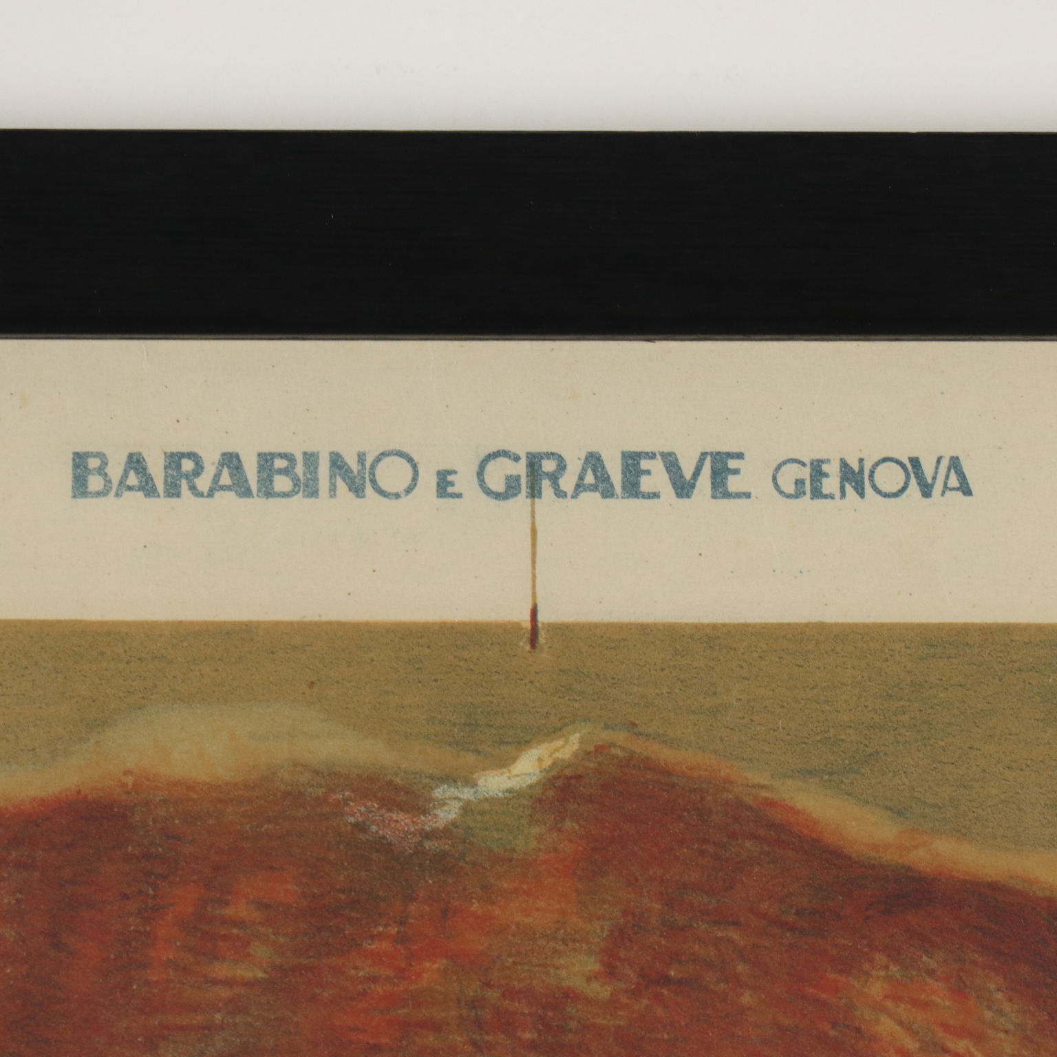 Litografia a colori. Firmata e datata 1924 in alto a destra. Impressa dallo stampatore Barabino & Graeve di Genova. Si tratta del manifesto pubblicitario per la nota azienda Pernigotti di Novi Ligure, oggi rinomata soprattutto per i famosi cioccolatini Gianduiotti, ma che esordì con la produzione di diversi prodotti dolciari ed affini. Ettore Mazzini, pittore ritrattista e paesaggista genovese, realizzò anche diverse illustrazioni pubblicitarie per importanti aziende liguri (si ricorda la locandina per le costruzioni navali, termiche, elettriche e meccaniche del gruppo Ansaldo di Genova). Il manifesto presentato è in buone condizioni, con macchie di umidità e un taglio della carta. In cornice.