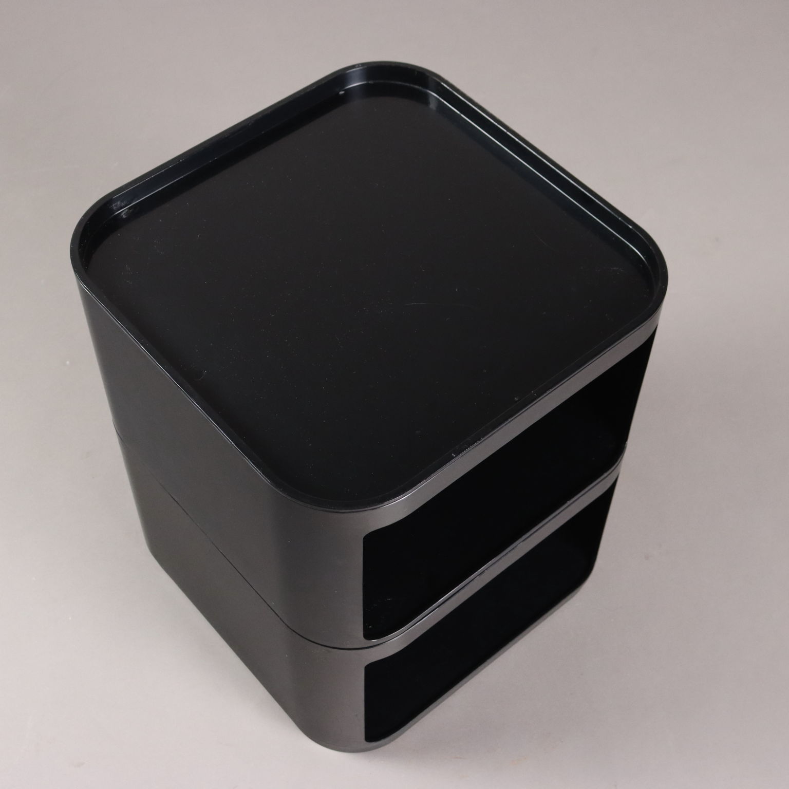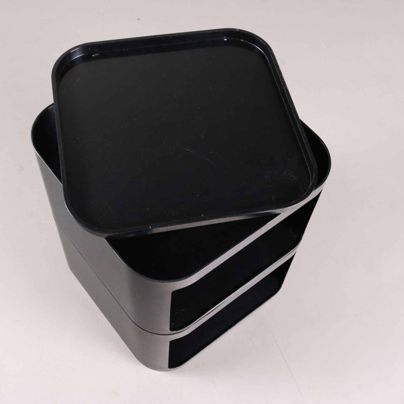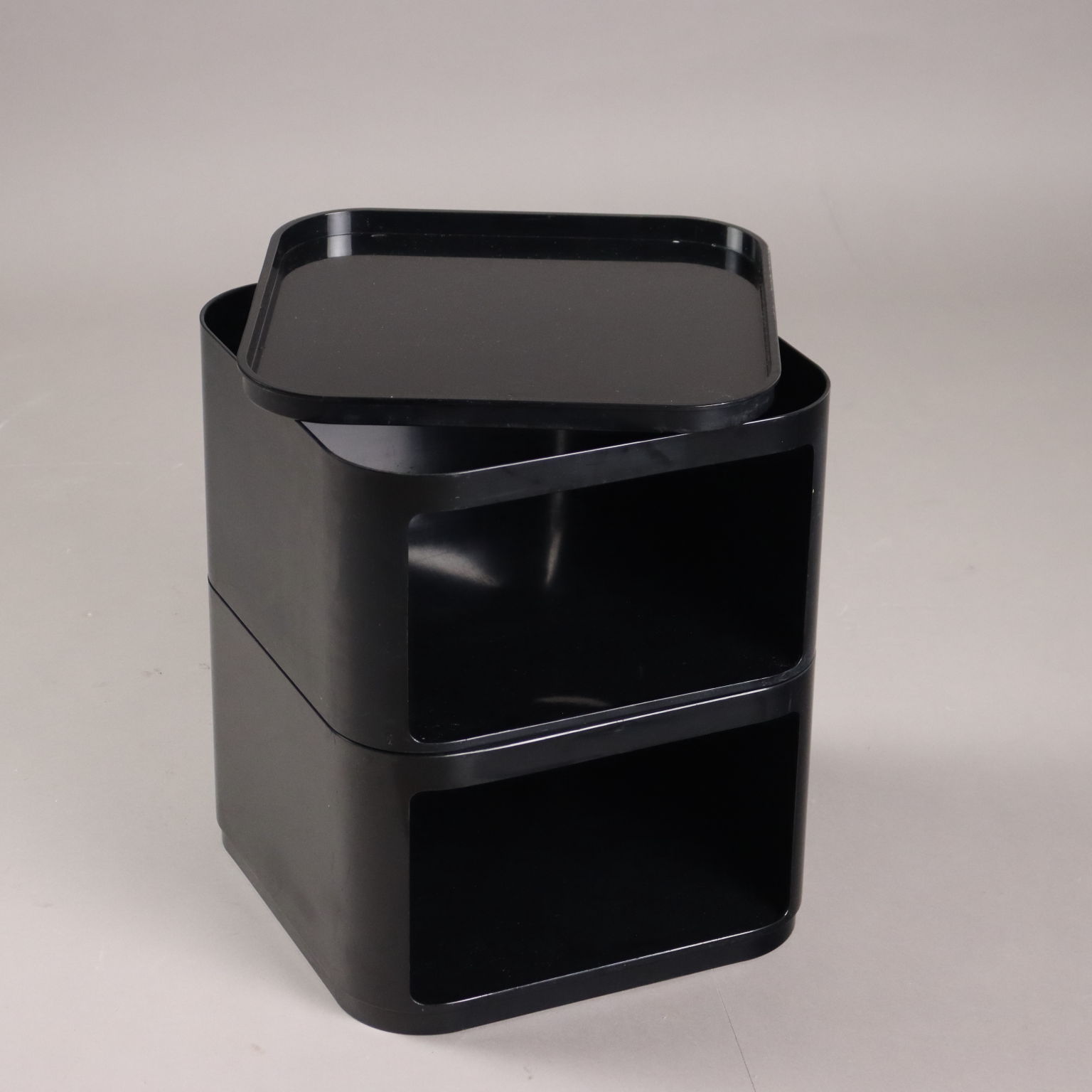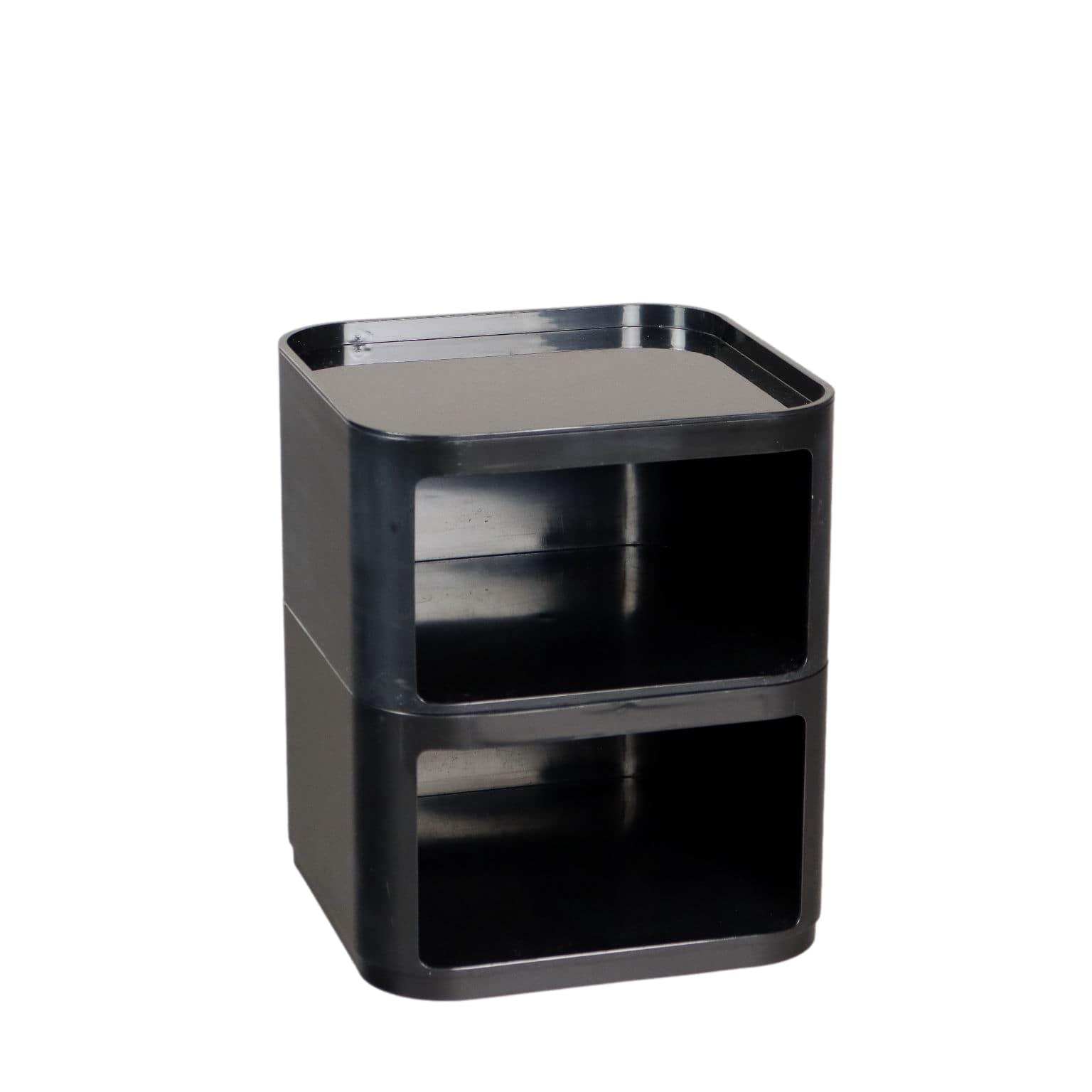Mobile componibile in materiale plastico nero con vassoio asportabile.