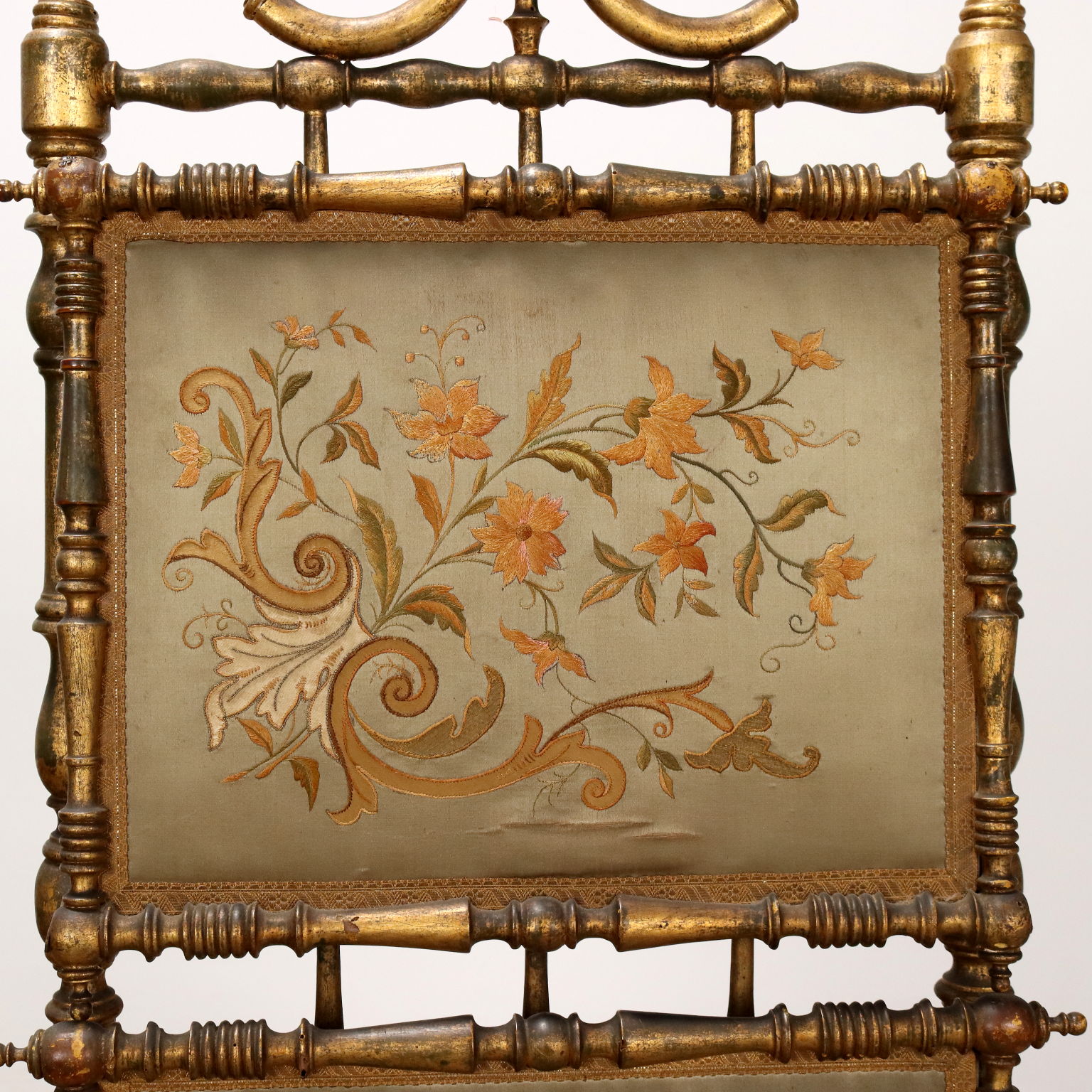 Portariviste in legno tornito e dorato, pannelli rivestiti in seta ricamata a mano a motivi floreali e fogliacei. Italia, XIX Secolo.