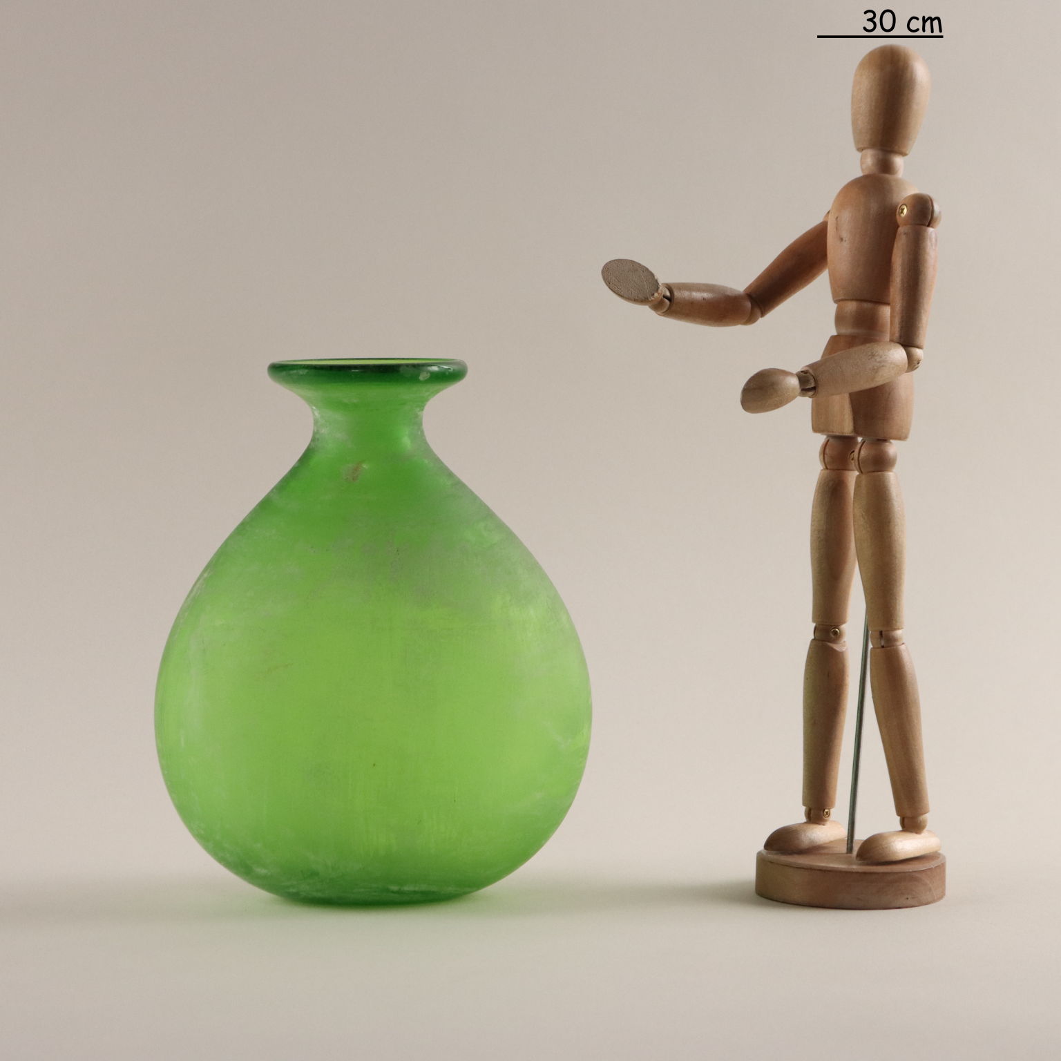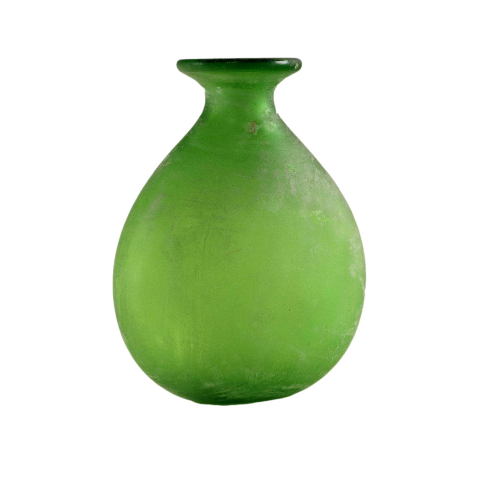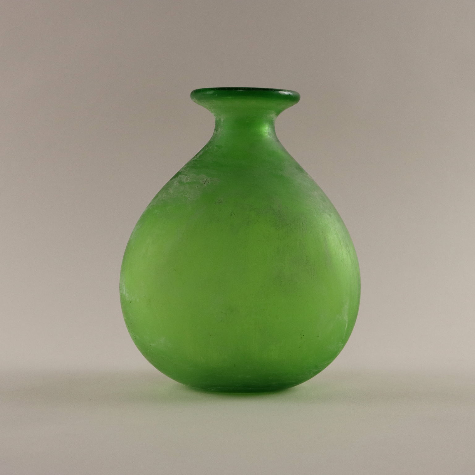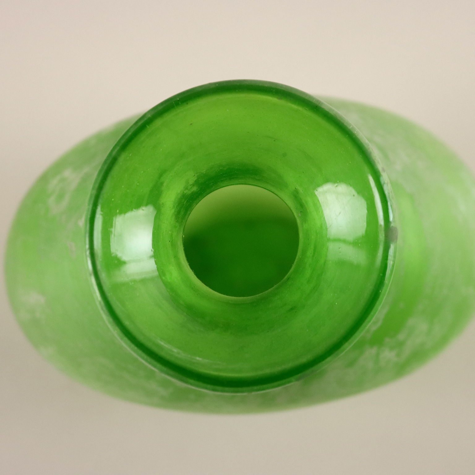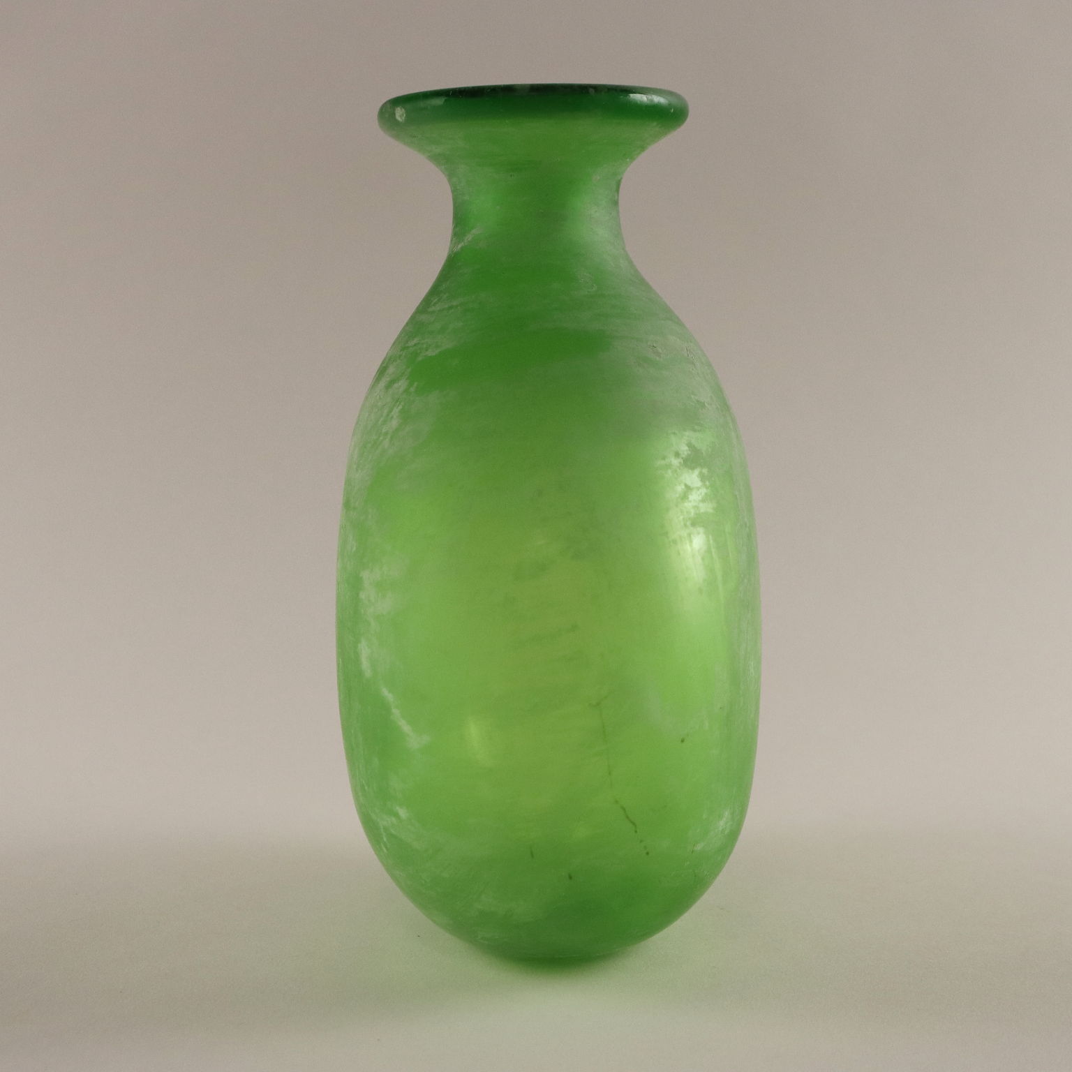 Vaso Scavo in vetro verde di Murano. Sotto la base reca la scritta "Suzuki" ad indicare il rivenditore milanese "Suzuki Art Decoration".